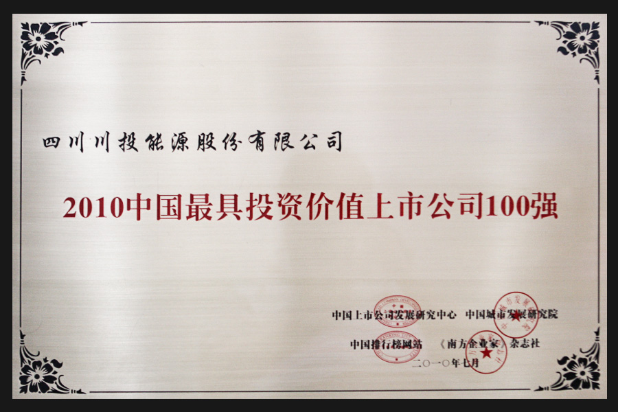 近年來,川投能源備受資本市場(chǎng)和社會(huì)各界青睞,連續(xù)入選滬深300指數(shù)樣本股、中證800指數(shù)樣本股、上證380指數(shù)樣本股、MSCI新興市場(chǎng)指數(shù)、MSCI ACWI全球指數(shù),同時(shí)作為首批中國(guó)A股股票納入富時(shí)全球股票指數(shù)系列和標(biāo)普新興市場(chǎng)全球基準(zhǔn)指數(shù);先后獲得“中國(guó)證券市場(chǎng)年會(huì)金鳳凰獎(jiǎng)”、“中國(guó)上市公司市值管理百家優(yōu)秀公司”、“最守誠(chéng)信上市公司”、“最具投資價(jià)值上市公司”、《上海證券報(bào)》“公司治理資本創(chuàng)新公司獎(jiǎng)”等榮譽(yù);獲得中華全國(guó)總工會(huì)授予的“抗震救災(zāi)恢復(fù)重建工人先鋒號(hào)”、“全國(guó)汶川地震災(zāi)后恢復(fù)重建先進(jìn)集體”;1998—2011年連續(xù)13年獲得“四川省重合同守信用先進(jìn)單位”稱號(hào);2011年8月,榮獲“全國(guó)模范勞動(dòng)關(guān)系和諧企業(yè)”稱號(hào);2011年11月,在《每日經(jīng)濟(jì)新聞報(bào)》聯(lián)合多家媒體和116家機(jī)構(gòu)評(píng)委傾力打造的全國(guó)上市公司“口碑榜”評(píng)選中,被代表市場(chǎng)2萬(wàn)億元資金的廣大投資者評(píng)選為“最具成長(zhǎng)潛力上市公司”;2011年12月,榮獲上海證券交易所評(píng)選的中國(guó)公司治理最高榮譽(yù)——“2011年度董事會(huì)獎(jiǎng)提名獎(jiǎng)”、“2011年度典型并購(gòu)重組案例獎(jiǎng)提名獎(jiǎng)”;2012年9月,川投能源黨委榮獲“全省創(chuàng)先爭(zhēng)優(yōu)先進(jìn)基層黨組織”稱號(hào); 2015年公司還獲得了由中國(guó)上市公司協(xié)會(huì)、中國(guó)證券投資者保護(hù)基金公司、上海證券交易所、深圳證券交易所、中國(guó)證券業(yè)協(xié)會(huì)、中國(guó)證券投資基金業(yè)協(xié)會(huì)聯(lián)合頒發(fā)的“2015中國(guó)最受投資者尊重的上市公司”入圍獎(jiǎng)。2022年6月,入選中國(guó)上市公司協(xié)會(huì)“2021年度A股上市公司現(xiàn)金分紅榜單豐厚回報(bào)榜”;2023年11月獲得中國(guó)證券報(bào)頒發(fā)的“第二十五屆上市公司金牛獎(jiǎng)·2022年度金信披獎(jiǎng)”;2024年10月被證券時(shí)報(bào)評(píng)選為“主板上市公司價(jià)值100強(qiáng)”。主體信用等級(jí)長(zhǎng)期維持AAA,以優(yōu)良的業(yè)績(jī)持續(xù)回報(bào)投資人,受到國(guó)內(nèi)國(guó)際兩個(gè)市場(chǎng)的高度關(guān)注和價(jià)值認(rèn)可。