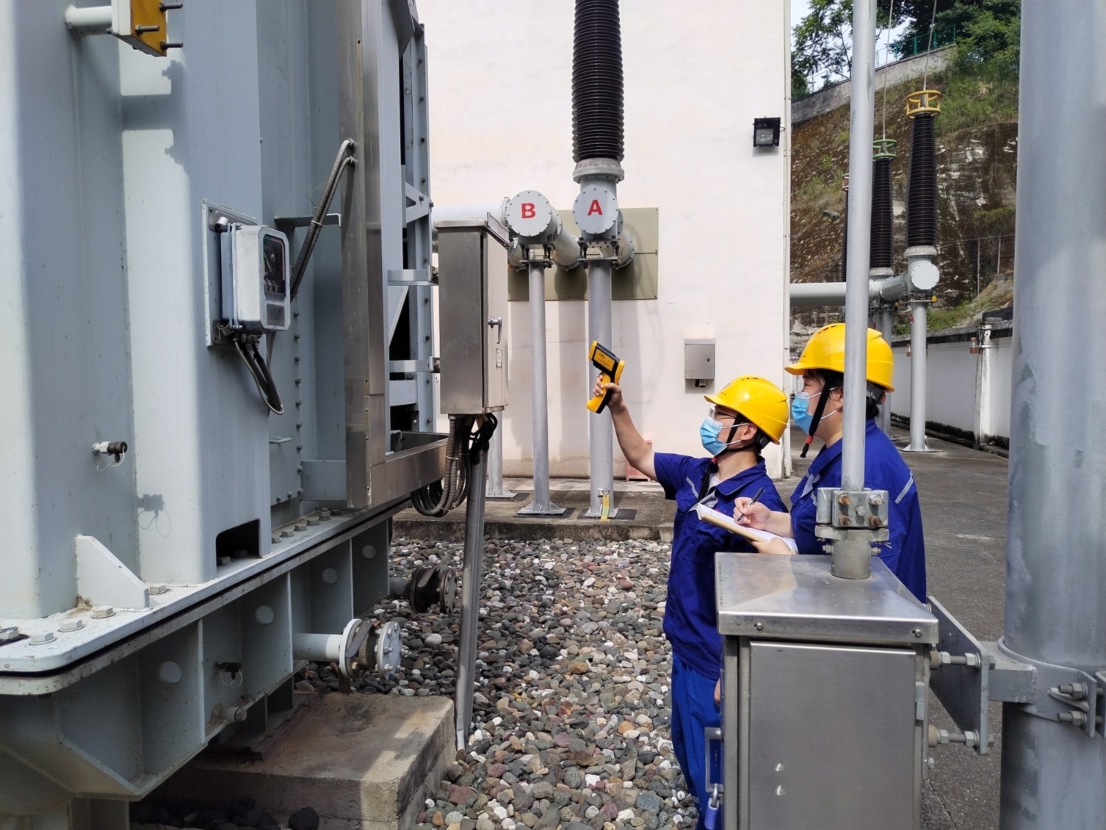 受涼山州氣候影響,較大晝夜溫差給玉田電站設(shè)備穩(wěn)定運行增添雙重負(fù)荷考驗。“寧做無用功,不留一隱患。”入夏以來,廠長孫萬慶始終堅持每日帶領(lǐng)維護(hù)人員在中午高溫時段到廠區(qū),大壩等對電力設(shè)備設(shè)施開展帶電檢測和紅外測溫。7月11日午時,1號主變C相低壓側(cè)導(dǎo)管突然出現(xiàn)輕微滲油現(xiàn)象,維護(hù)人員頭頂烈日,“汗”衛(wèi)堅守在1號主變前,精心監(jiān)視滲油狀況,研討避峰消缺方案,中控室監(jiān)控人員加強(qiáng)遠(yuǎn)方監(jiān)視,奮戰(zhàn)9小時,奮力保供電。