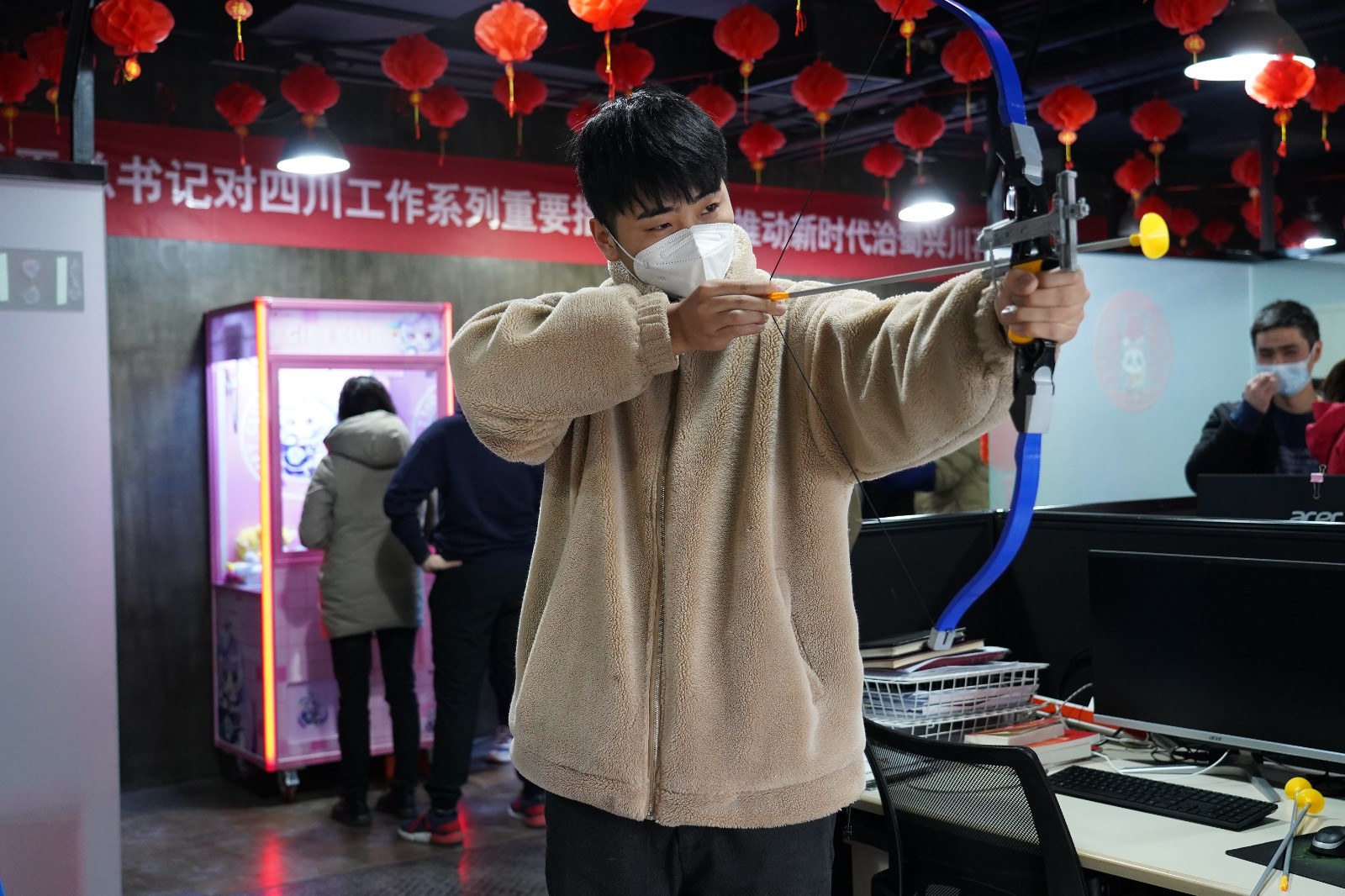 玉兔賀歲迎新年,生肖兔的形象自然成為新年中不可或缺的元素。在非遺體驗區(qū)和新年祈福區(qū),傳統(tǒng)剪紙、春聯(lián)、燈籠技藝與生肖兔的結(jié)合,更是把中華傳統(tǒng)文化體現(xiàn)得淋漓盡致。精美剪紙活靈活現(xiàn)、揮毫潑墨筆走龍蛇,大家紛紛展示自己“得意之作”,表達辭舊迎新、接祥納福的美好祝愿。而游戲互動區(qū)的“萌力十足娃娃機”“穿越火線”“戰(zhàn)弓烈焰” 等趣味游戲,不僅讓大家得到了身心放松、精神愉悅,也展現(xiàn)著川投能源人的團結(jié)協(xié)作和良好風貌。