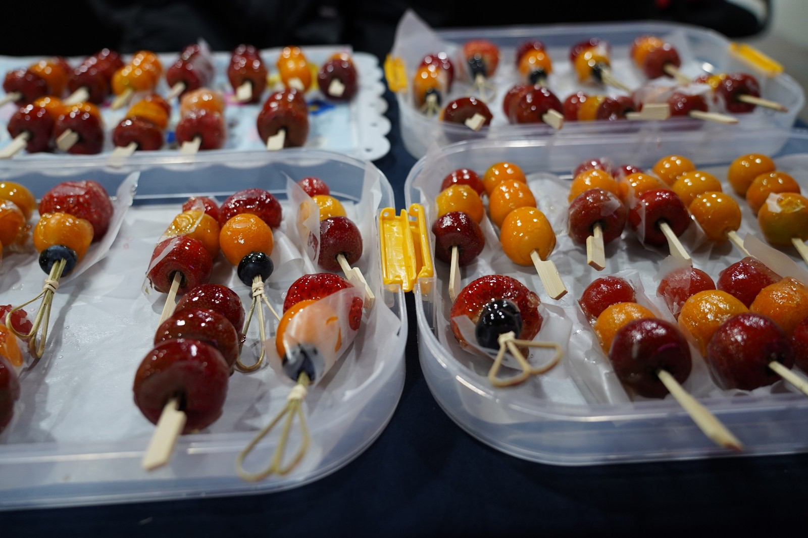 在美食集市區(qū),大家現(xiàn)場體驗制作童年記憶--糖畫、冰糖葫蘆。鐵勺是筆,糖稀是墨,糖熬成的糖稀吐出甜蜜的小泡泡,輕輕一勺,各種栩栩如生的圖形,躍然而成。一支支的冰糖葫蘆,不僅串起了職工之間的甜蜜互動,也勾起了這些“大朋友”們對美好童年的回憶。