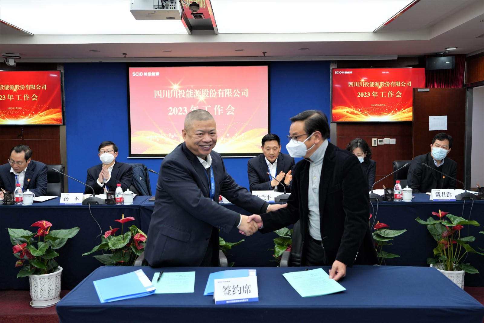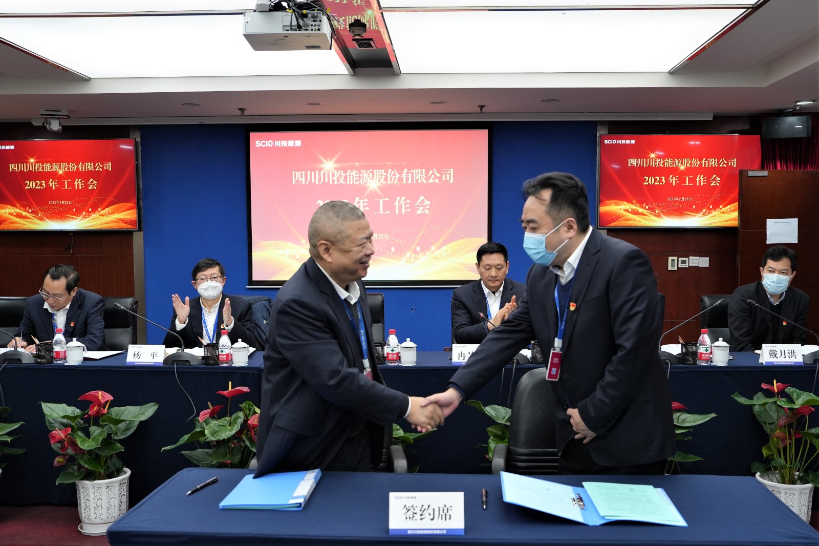 會(huì)上,楊洪與所屬企業(yè)負(fù)責(zé)人代表簽署了《經(jīng)營(yíng)業(yè)績(jī)責(zé)任書(shū)》《安全生產(chǎn)、環(huán)境保護(hù)工作目標(biāo)責(zé)任書(shū)》;冉蘭平宣讀2022年度優(yōu)秀員工表彰通報(bào);黨委委員、副總經(jīng)理、總法律顧問(wèn)楊平作2022年安全環(huán)保工作總結(jié)及2023年重點(diǎn)工作安排;黨委委員、財(cái)務(wù)總監(jiān)劉好傳達(dá)川投集團(tuán)2023年工作會(huì)精神。