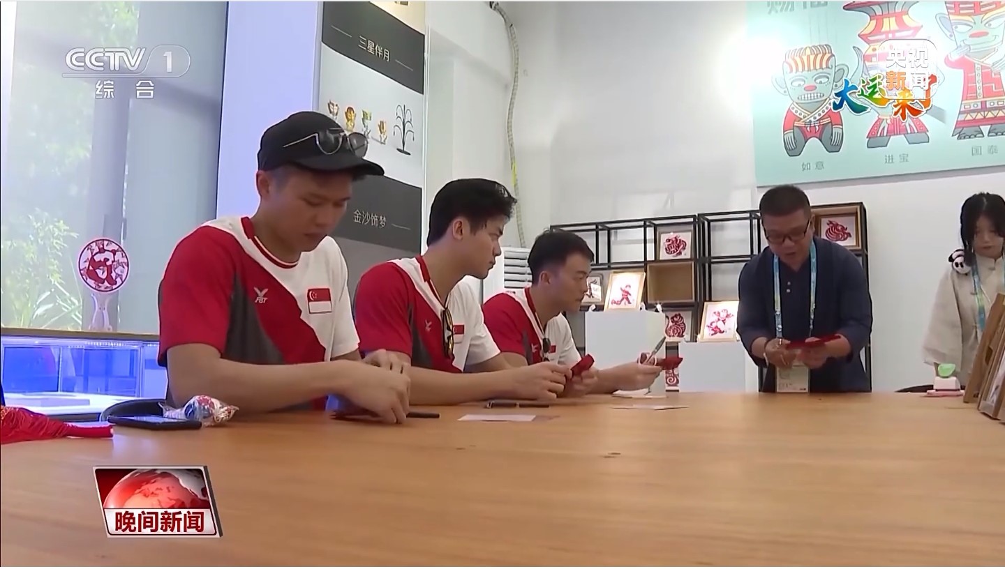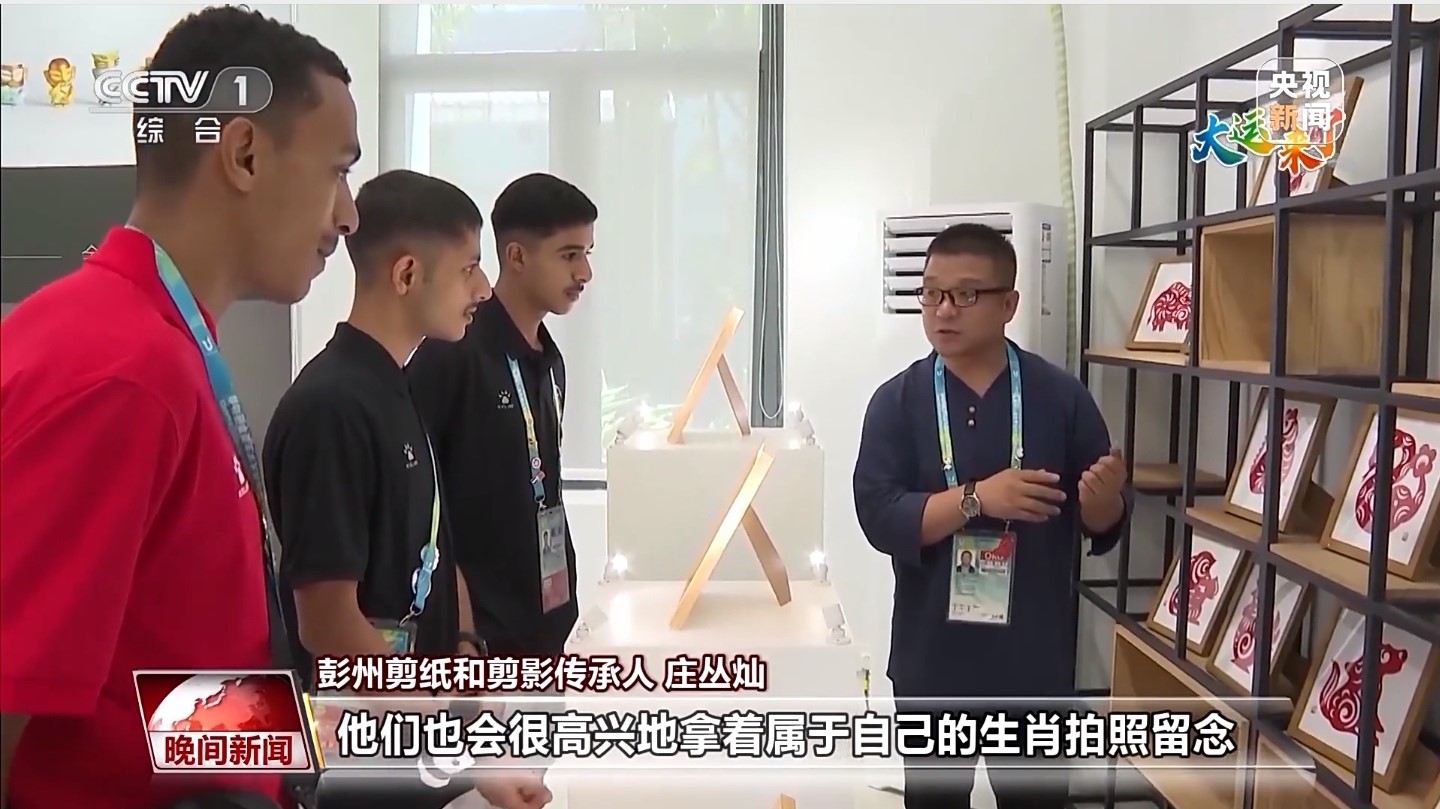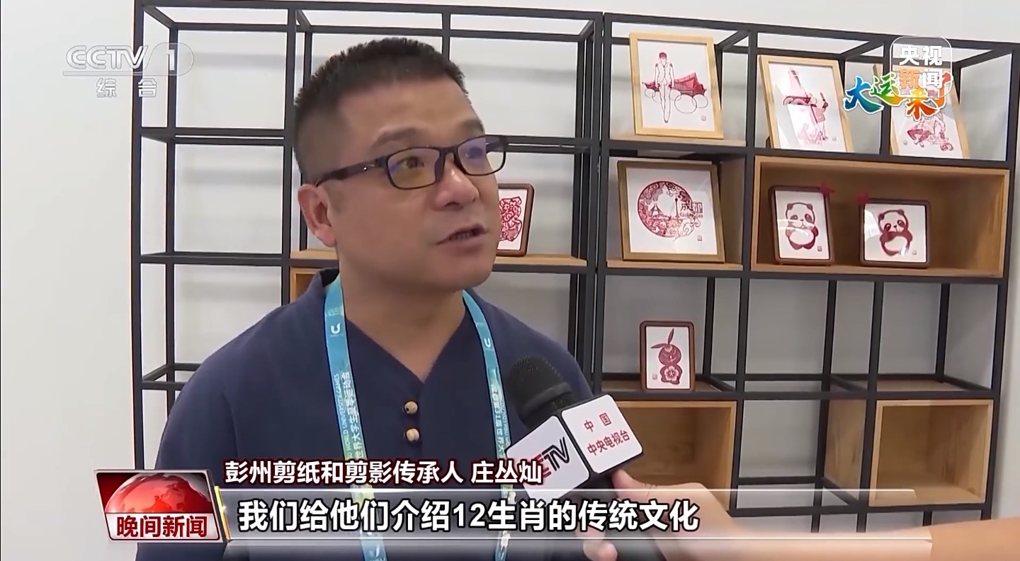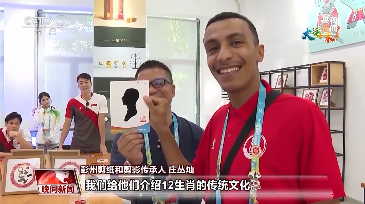 大運會期間,成都大運村里掀起一股“非遺熱”,引得各大媒體前來競相報道。互動體驗中心里,神奇的剪紙也吸引了中外運動員們紛紛前來參與體驗。