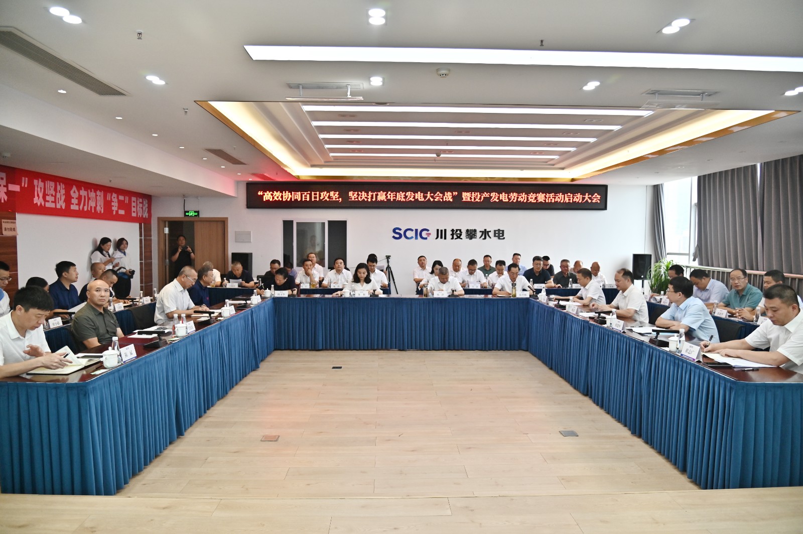 為深入學習貫徹習近平新時代中國特色社會主義思想,把黨的二十屆三中全會精神成效轉化為推動銀江水電站工程建設的重要舉措,7月31日,攀水電公司組織召開了“高效協同百日攻堅 堅決打贏年底發電大會戰”暨投產發電勞動競賽活動啟動大會。川投集團黨委委員、職工董事、工會主席朱莉出席會議并講話,川投能源黨委書記、副董事長、總經理楊洪,主要參建單位長江設計集團、貴陽院、水電五局、水電七局、廣東源天后方領導及銀江項目部負責人參加會議,川投能源副總經理、攀水電公司黨總支書記、董事長徐孝剛主持會議。
