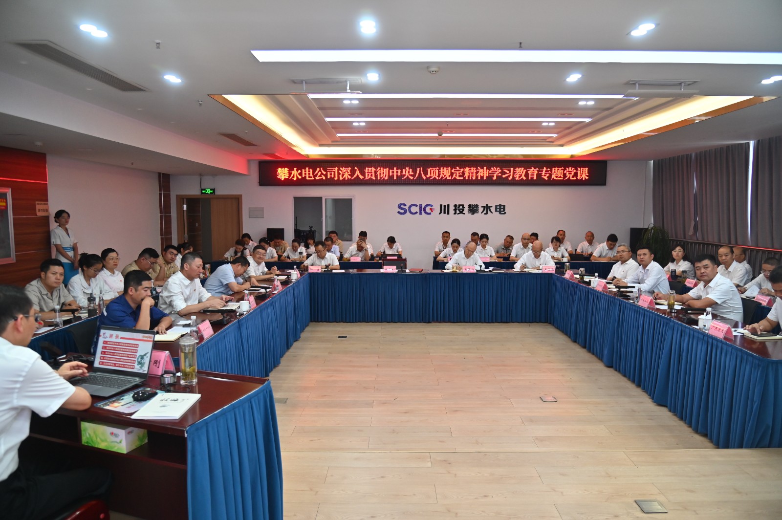 為深入貫徹中央八項規定精神學習教育,持續鞏固作風建設成果,推進全面從嚴治黨向縱深發展,7月1日,在黨的104歲生日之際,川投能源副總經理、攀水電公司黨總支書記、董事長徐孝剛講授了以“扎實開展深入貫徹中央八項規定精神學習教育,為國企高質量發展提供堅強紀律作風保障”為題的專題黨課,公司全體黨員、職工,主要參建單位負責人及黨員代表共計50余人參加。