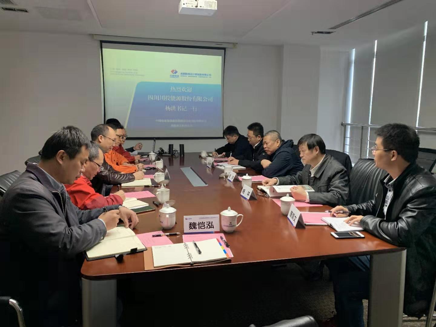 11月26日下午,川投能源黨委書記、總經理楊洪率隊拜訪中電建成都院新能源公司,雙方就進一步加強新能源領域合作事宜進行了深入交流。公司副總經理肖長青,黨委委員、副總經理楊平,戰略發展部相關人員參加會談。