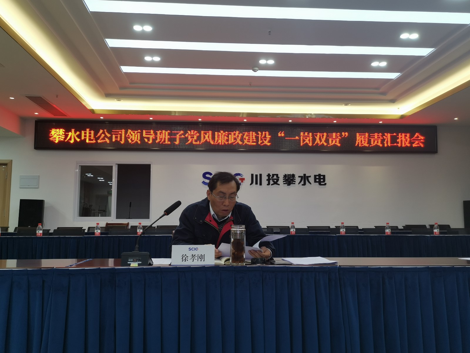 為貫徹落實全面從嚴治黨總體要求,進一步強化公司黨總支全面從嚴治黨主體責任考核工作,根據中共中央辦公廳《黨委(黨組)落實全面從嚴治黨主體責任規定》以及川投能源黨委《落實全面從嚴治黨主體責任考核實施辦法》等相關規定要求。2021年12月13日,川投能源副總經理、攀水電公司黨總支書記、董事長徐孝剛組織召開專題會議,聽取4名領導班子成員(黨總支委員)落實黨風廉政建設“一崗雙責”情況匯報。