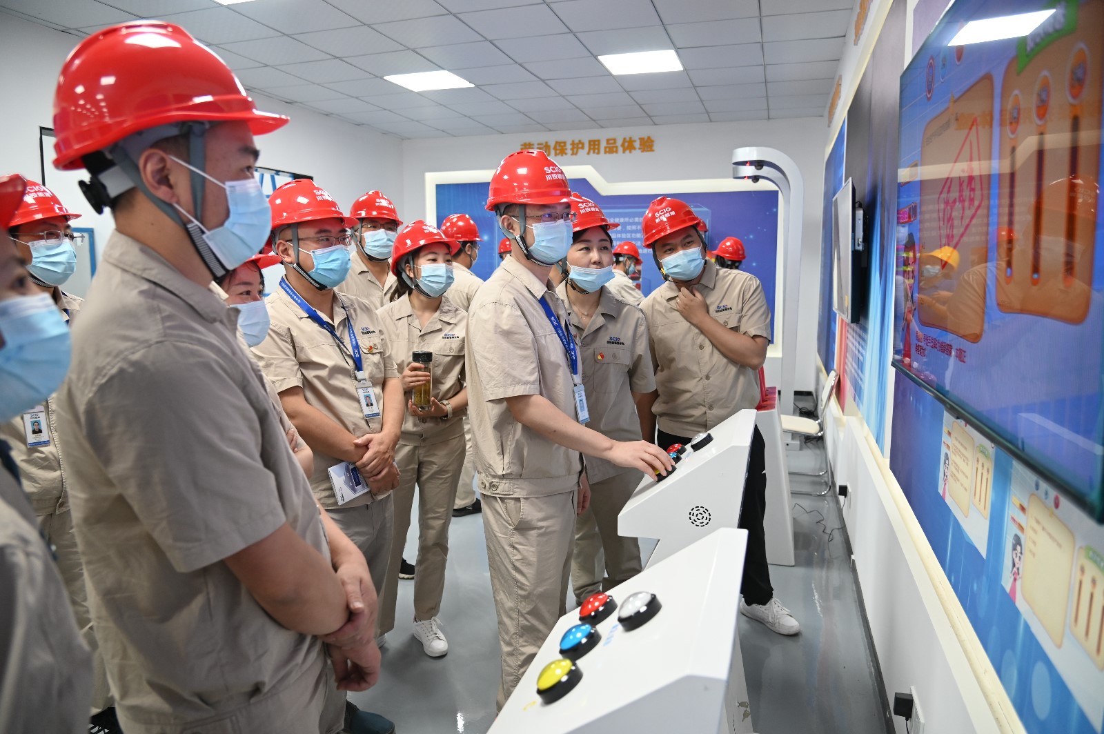 隨后,全體人員在公司安全體驗館進行了沉浸教學(xué),該體驗館面積約700平方米,設(shè)有安全帶、有限空間、機械傷害、平衡木、護欄推倒、安全帽撞擊、高處墜落、觸電、滅火器使用、醫(yī)療急救、安全事故VR體驗等體驗項目,包含勞動防護用品穿戴及使用、安全標(biāo)識及工程機械認知、風(fēng)險辨識、安全知識和應(yīng)急處置等教育培訓(xùn)內(nèi)容。本次安全體驗教育培訓(xùn)通過展板展示、實景模擬、案例警示、知識答題、親身體驗等方式,將施工現(xiàn)場常見的危險源、危險行為與事故類型具體化、實物化,充分展示工程建設(shè)需要學(xué)習(xí)掌握的安全知識和技能。