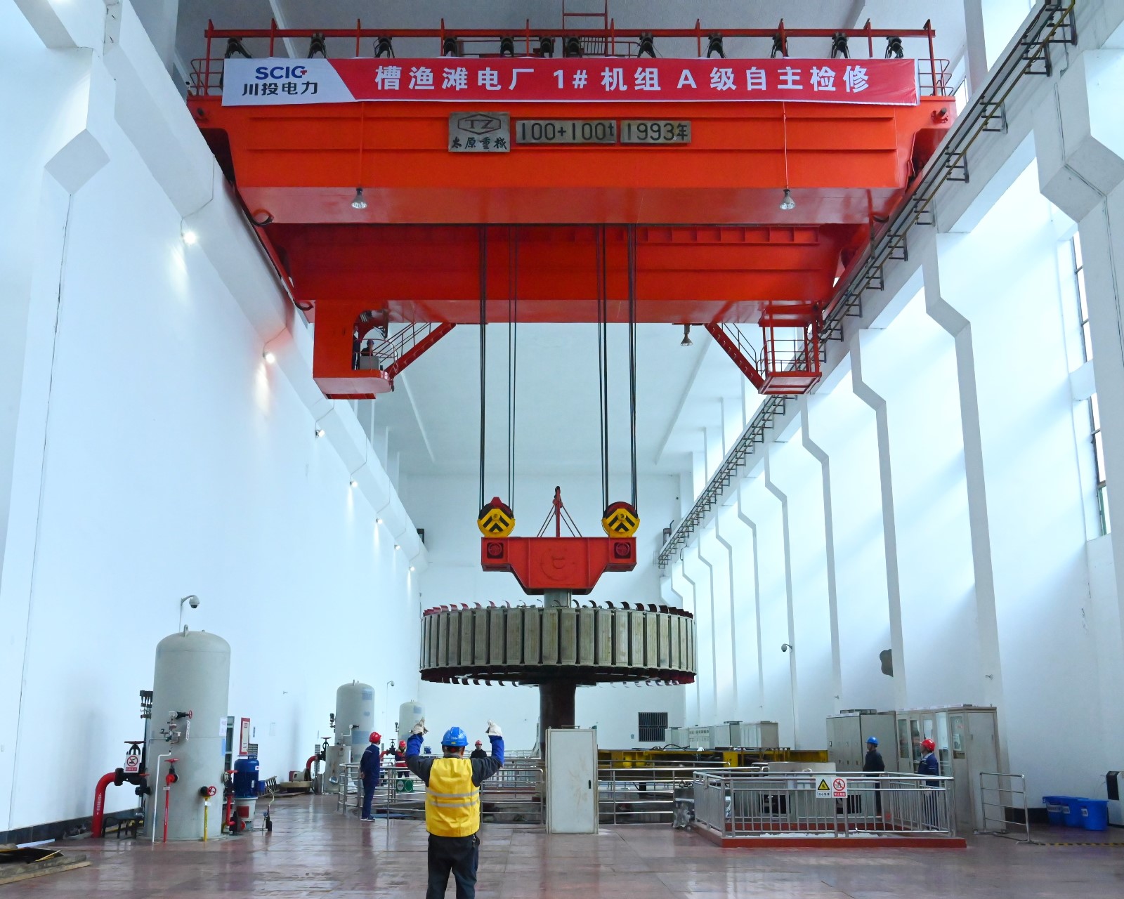 槽漁灘電廠按計(jì)劃開展了1#機(jī)組大修,2021年12月1日開工,2002年2月15日機(jī)組成功并網(wǎng)發(fā)電,檢修工期僅僅用了65天。參檢人員提前編制發(fā)電機(jī)轉(zhuǎn)子、轉(zhuǎn)輪吊裝方案,明確人員職責(zé),檢查并調(diào)校行車、吊具,規(guī)劃行徑路線,在檢修團(tuán)隊(duì)通力協(xié)作下,均一次性安全順利吊出。2#、3#機(jī)組C修以及1#主變小修、2#主變大修也于4月5日全部完工;目前正持續(xù)推進(jìn)線路保護(hù)改造工作。