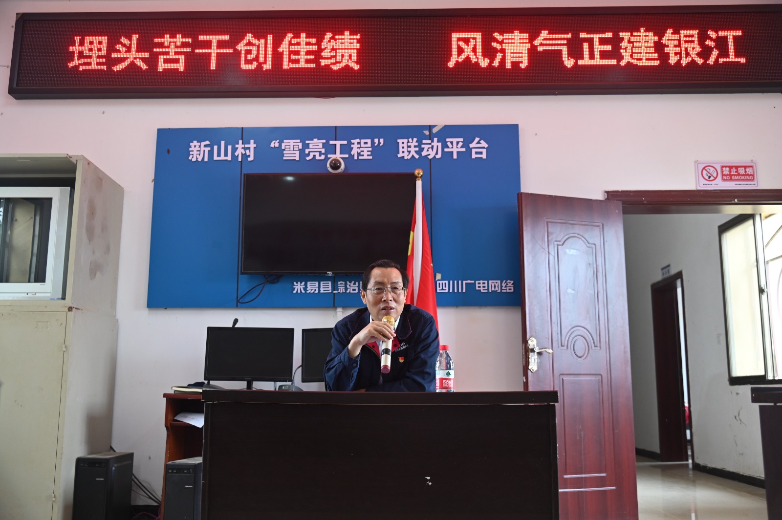 上午10時30分,在攀枝花市黨風廉政教育示范點——米易縣新山傈僳族鄉新山村,川投能源副總經理、攀水電公司黨總支書記、董事長徐孝剛以“埋頭苦干創佳績,風清氣正建銀江”為題,為大家講授了一堂廉潔黨課。