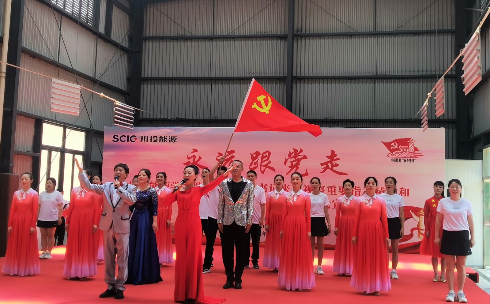 為進(jìn)一步強(qiáng)化宣貫效果,川投能源理論宣講隊(duì)以“永遠(yuǎn)跟黨走”為主題為大家奉上了一場立意深遠(yuǎn)、形式多樣、內(nèi)容精美的理論宣講:“動”有以省十二次黨代會精神為內(nèi)容創(chuàng)作的音樂快板《治蜀興川新時(shí)代》,有激情澎湃的歌曲聯(lián)唱《美麗中國夢》《領(lǐng)航》;“靜”則有根據(jù)習(xí)近平總書記來川視察重要指示精神創(chuàng)作的詩歌朗誦《永遠(yuǎn)跟黨走 譜寫新篇章》,還有感人至深的情景短劇《那雙紅布鞋》。期間,觀眾互動搶答環(huán)節(jié)里大家積極參與、踴躍搶答,更是將現(xiàn)場宣講氣氛推向高潮。這場“動”“靜”結(jié)合、相得益彰的宣講,用貼近群眾的“小節(jié)目”講凝神鑄魂的“大道理”,以“理論+文藝”的方式推動習(xí)近平總書記來川視察重要指示精神和省第十二次黨代會精神深入人心、落地生根。