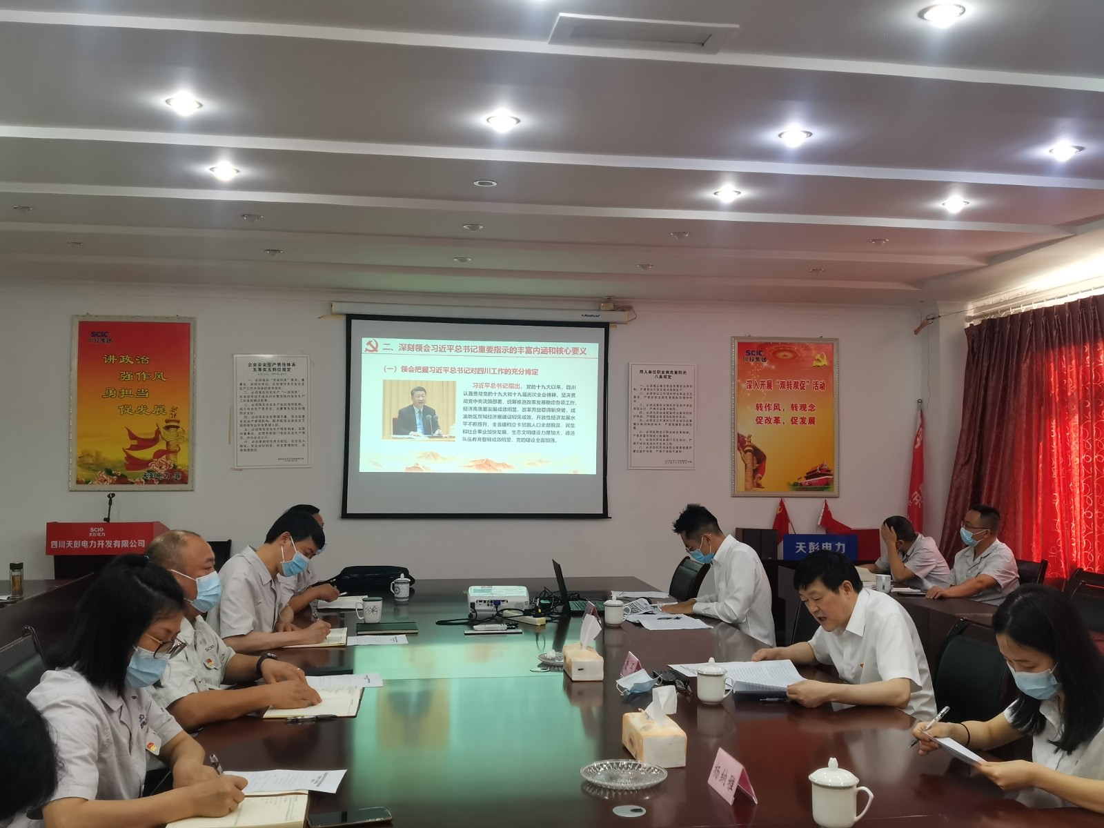 為迅速落實(shí)上級黨委有關(guān)學(xué)習(xí)宣傳貫徹的部署和要求,7月8日,川投能源黨委委員、副總經(jīng)理、總法律顧問楊平率隊(duì)赴天彭電力,專題宣講習(xí)近平總書記來川視察重要指示精神暨省第第二次黨代會精神。川投能源審計(jì)部副經(jīng)理?xiàng)罴{雅、川投能源黨群工作部李睿參加宣講活動。