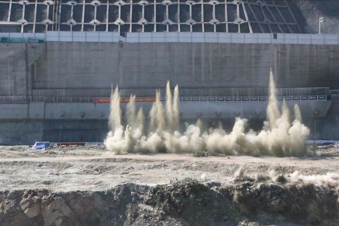 銀江水電站位于攀枝花市主城區(qū),二期基坑開挖施工外圍邊界條件復雜,左右岸各存在一條出入攀枝花市交通主干道(國道),此外,成昆鐵路渡口支線緊鄰左岸邊坡及二期基坑爆破區(qū),爆破施工屬涉鐵工程,爆破前需要辦理相關手續(xù)。公司先后多次組織參建單位召開專題會議研究涉鐵爆破事宜,施工單位積極落實審批備案手續(xù),多次往返于成都和攀枝花之間,歷經曲折,終于在7月取得了鐵路、公安等主管部門批準,8月13日16點30分,隨著一聲巨響,二期基坑土石方開挖成功迎來“首爆”,主體工程建設正式邁入“快車道”。