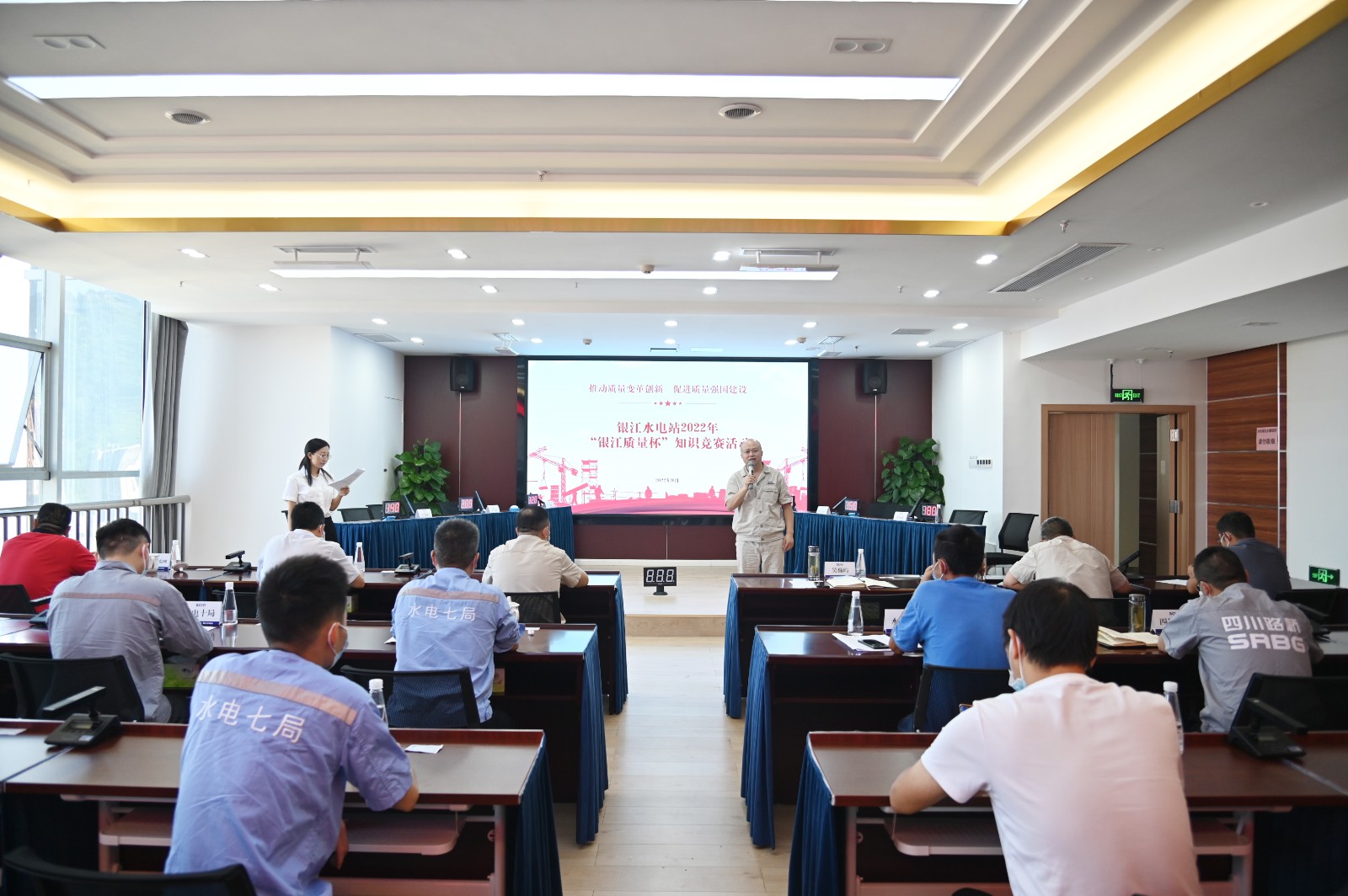 9月27日,公司組織各參建單位成立6支參賽隊(duì)伍,進(jìn)行了一場激烈的“銀江質(zhì)量杯”知識(shí)競賽活動(dòng)。知識(shí)競賽題庫由公司根據(jù)現(xiàn)場施工情況及質(zhì)量控制要點(diǎn)精心編制,各參賽隊(duì)伍通過順序答題、搶答答題等方式,闖過單項(xiàng)選擇題、多項(xiàng)選擇題、問答題等重重關(guān)卡,充分調(diào)動(dòng)了參賽選手積極性,使選手受到一次生動(dòng)的質(zhì)量知識(shí)教育,進(jìn)一步強(qiáng)化選手質(zhì)量素質(zhì),進(jìn)一步提高了質(zhì)量知識(shí)水平。活動(dòng)根據(jù)最終答題得分,決出了各參賽隊(duì)伍名次,公司及參建單位主要領(lǐng)導(dǎo)為獲獎(jiǎng)隊(duì)伍頒發(fā)了榮譽(yù)證書。公司黨總支副書記、總經(jīng)理吳巍嶼對活動(dòng)進(jìn)行了點(diǎn)評,鼓勵(lì)各參建單位加強(qiáng)質(zhì)量知識(shí)學(xué)習(xí),在銀江質(zhì)量管理中不忘初心、不負(fù)韶華、奮楫篤行,努力把銀江水電站建設(shè)成“精品工程、樣板工程、陽光工程”。