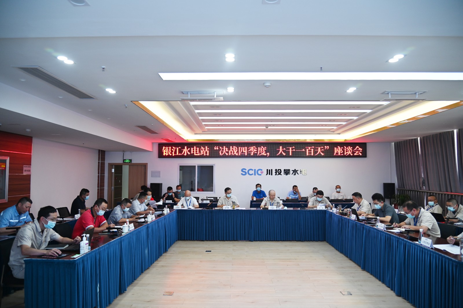 隨后,攀水電公司在公司2620會議室組織召開了銀江水電站“決戰四季度、大干一百天,力爭提前完成基坑開挖,加快主體工程施工,獻禮二十大”座談會,會議由攀水電公司黨總支副書記、總經理吳巍嶼主持,公司領導班子成員、各部門負責人及各參建單位主要負責人共計30余人參加了會議。
