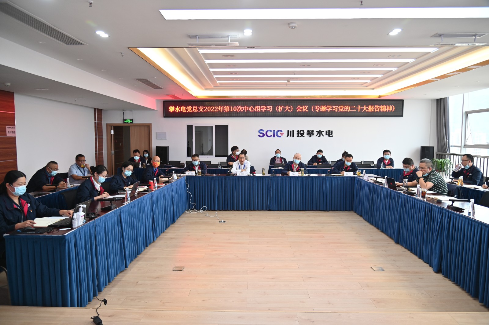 10月22日上午,在黨的二十大勝利閉幕之際,攀水電公司黨總支在2620會議室召開了2022年第10次中心組(擴大)學習會議,專題學習習近平總書記在中國共產黨第二十次全國代表大會上的報告。會議由川投能源副總經理、攀水電公司黨總支書記、董事長、攀新能源公司董事長徐孝剛主持,公司黨總支中心組成員、聯建支部書記、其他黨員、統戰對象、入黨積極分子共40余人參加學習。