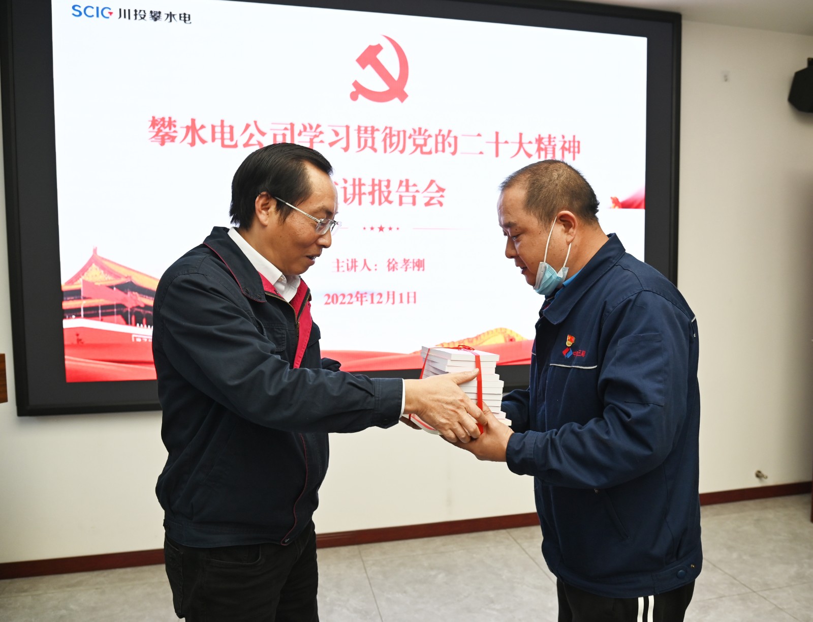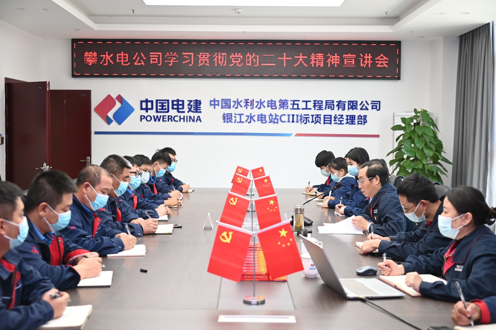 根據(jù)川投集團(tuán)黨委、川投能源黨委有關(guān)要求和攀水電公司黨總支工作安排,為進(jìn)一步學(xué)習(xí)宣傳貫徹黨的二十大精神,激勵銀江水電站參建單位全面學(xué)習(xí)、全面把握、全面落實黨的二十大精神,12月1日上午,川投能源副總經(jīng)理、攀水電公司黨總支書記、董事長、攀新能源公司董事長徐孝剛到聯(lián)建支部水電五局銀江項目黨支部進(jìn)行黨的二十精神專題宣講。水電五局銀江項目黨支部全體黨員、入黨積極分子、職工代表共計20余人參加此次宣講會。