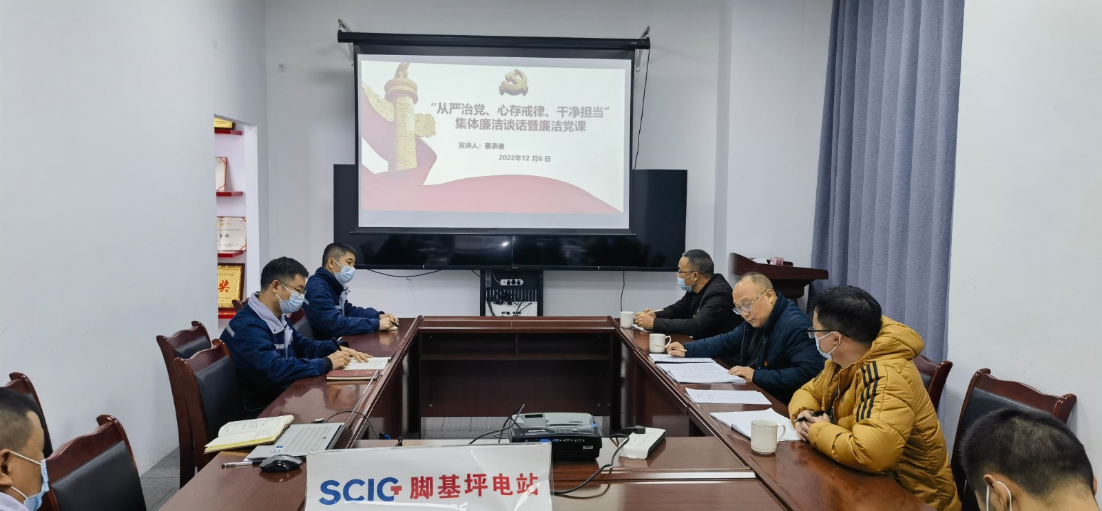 為深入宣傳貫徹黨的二十大精神,突出把好政治廉潔關(guān),筑牢廉潔防線,堅定不移把黨的二十大作出的重大決策部署落地落實,12月6日,川投電力黨委副書記、總經(jīng)理蔡承德為腳基坪電廠全體黨員、入黨積極分子講授廉潔黨課,并進行集體廉潔談話。