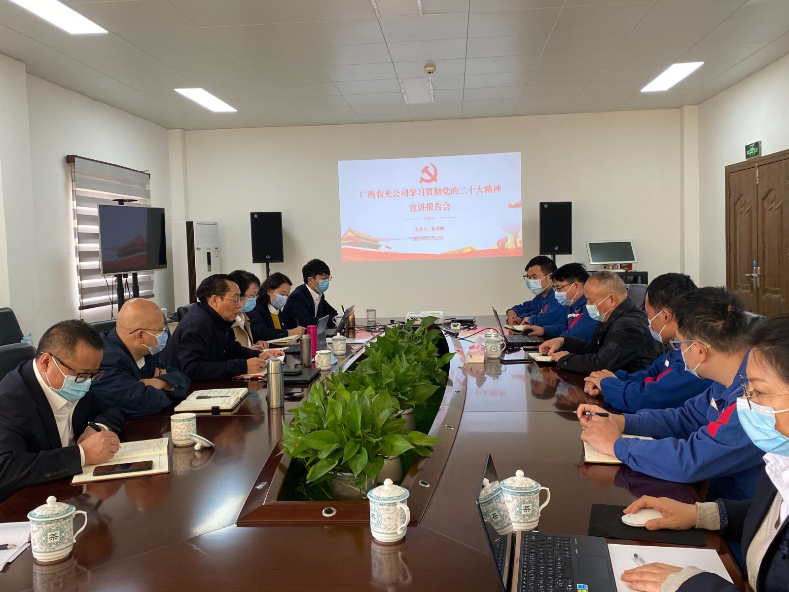 為進(jìn)一步推動(dòng)黨的二十大精神走深走實(shí),12月14日上午,川投能源副總經(jīng)理,攀水電黨總支書記、董事長(zhǎng),攀新能源董事長(zhǎng),廣西農(nóng)光董事長(zhǎng)徐孝剛一行赴廣西農(nóng)光公司作黨的二十大精神專題宣講。攀水電黨總支學(xué)習(xí)貫徹黨的二十大精神宣講組成員、廣西農(nóng)光公司全體黨員、干部職工共20人參加宣講會(huì),會(huì)議由攀新能源公司副總經(jīng)理?xiàng)顛怪鞒帧?