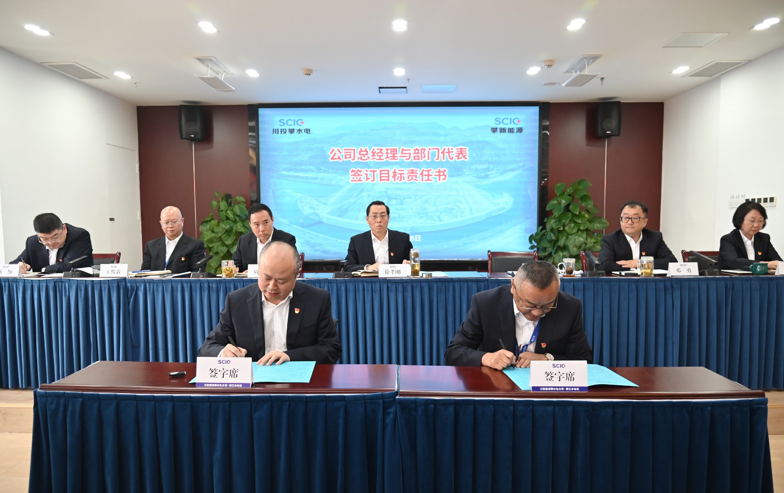 會議傳達學習了川投集團、川投能源2023年工作會精神;攀水電公司總經(jīng)理吳巍嶼和攀新能源公司總經(jīng)理周軍分別作了兩公司2022年工作總結及2023年工作計劃的報告,全面總結了2022年各項目標任務完成情況,分析了當前面臨的形勢和問題,分解下達了2023年主要目標任務,提出了主要工作舉措。按照董事會授權,吳巍嶼總經(jīng)理與攀水電公司部門代表簽訂了《2023年度部門目標責任書》;部門及參建單位代表分別作了表態(tài)發(fā)言。