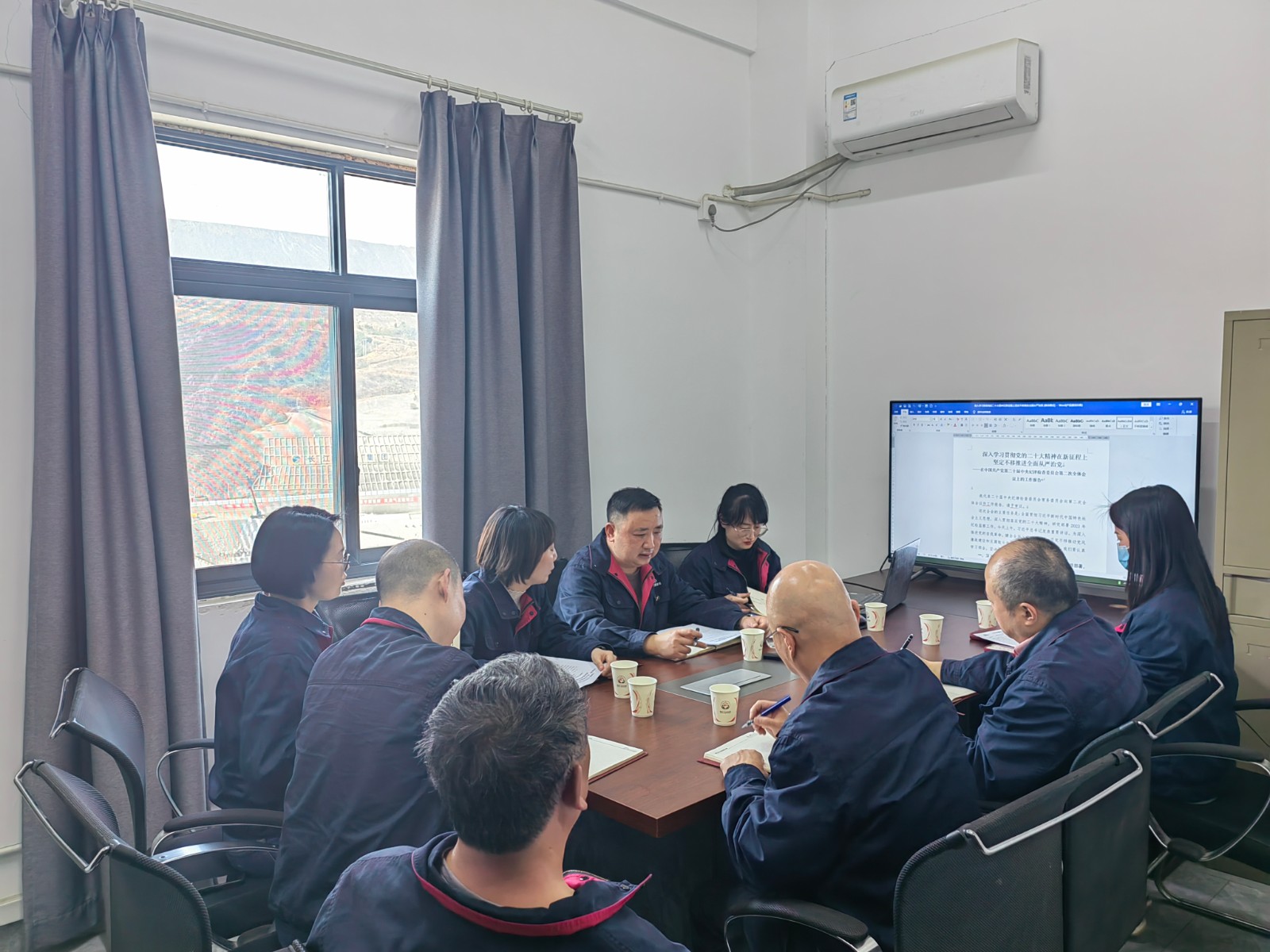 隨后,參加人員在施工變電站會(huì)議室進(jìn)行了學(xué)習(xí)交流。公司黨總支委員、紀(jì)檢小組長(zhǎng)、總經(jīng)理助理?xiàng)钿J同志領(lǐng)學(xué)了中國(guó)共產(chǎn)黨第二十屆中央紀(jì)委二次全會(huì)工作報(bào)告《深入學(xué)習(xí)貫徹黨的二十大精神,在新征程上堅(jiān)定不移推進(jìn)全面從嚴(yán)治黨》,楊銳還講述了近來(lái)的腐敗典型案例,以案明紀(jì),督促黨員干部以案促改、引以為戒、警鐘長(zhǎng)鳴。支部宣傳委員兼紀(jì)檢委員周弋力同志宣講了2月23日省委黨建領(lǐng)導(dǎo)小組會(huì)議精神,參會(huì)人員對(duì)支部黨建工作進(jìn)行了交流發(fā)言,提出了諸多建設(shè)性意見(jiàn)。