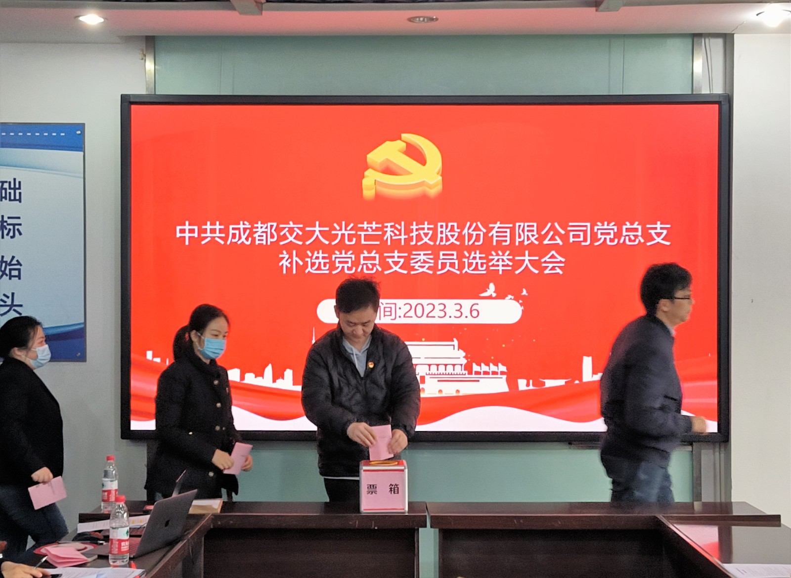 3月6日,為保障組織健全,充分發揮政治功能,堅持黨對國有企業的全面領導,交大光芒黨總支召開黨員大會,以無記名投票和差額選舉方式補選黨總支委員1名,并召開總支部委員會以無記名投票和等額選舉方式選舉產生了新的黨總支副書記。