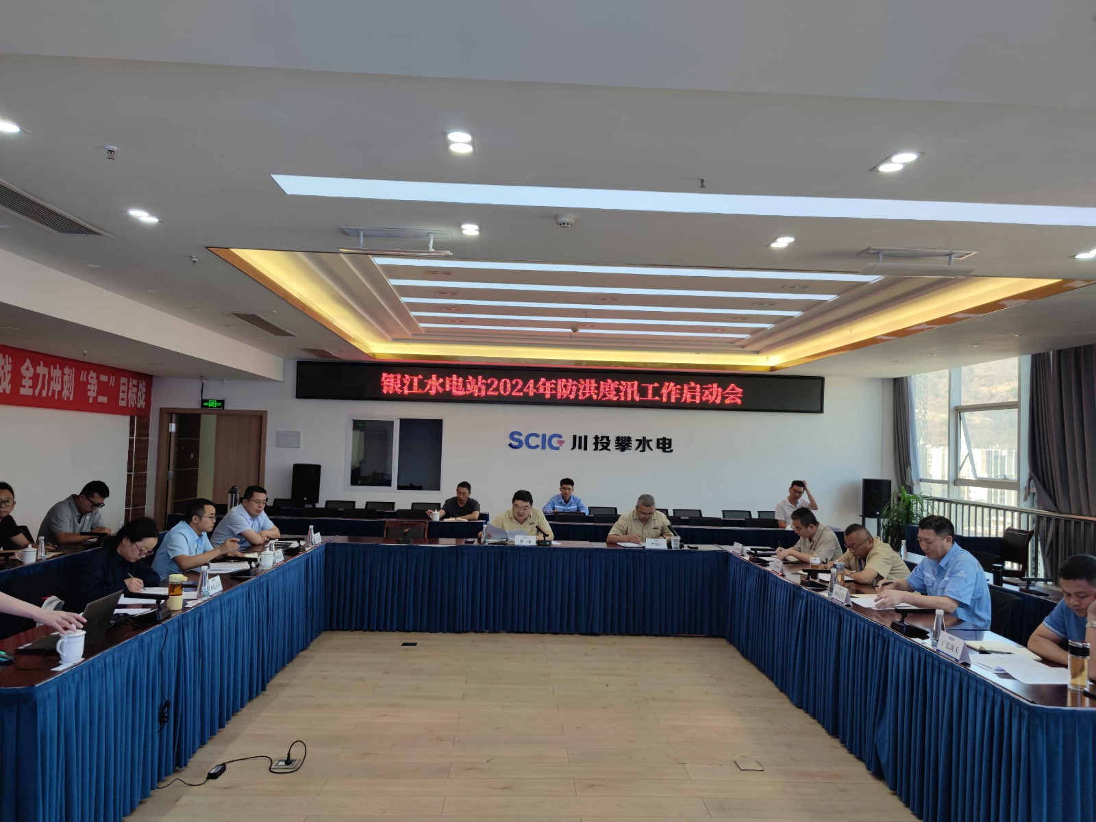 4月24日上午,公司組織各參建單位在公司2620會議室召開了銀江水電站2024年防洪度汛工作啟動會,會議由公司總工程師、防汛防地災領導小組辦公室主任嚴瑞平主持,公司副總經理、防汛防地災領導小組副組長唐伽出席會議。公司工程管理部、安全環保部負責人及相關人員,各參建單位項目負責人、分管生產、安全工作負責人參加會議。