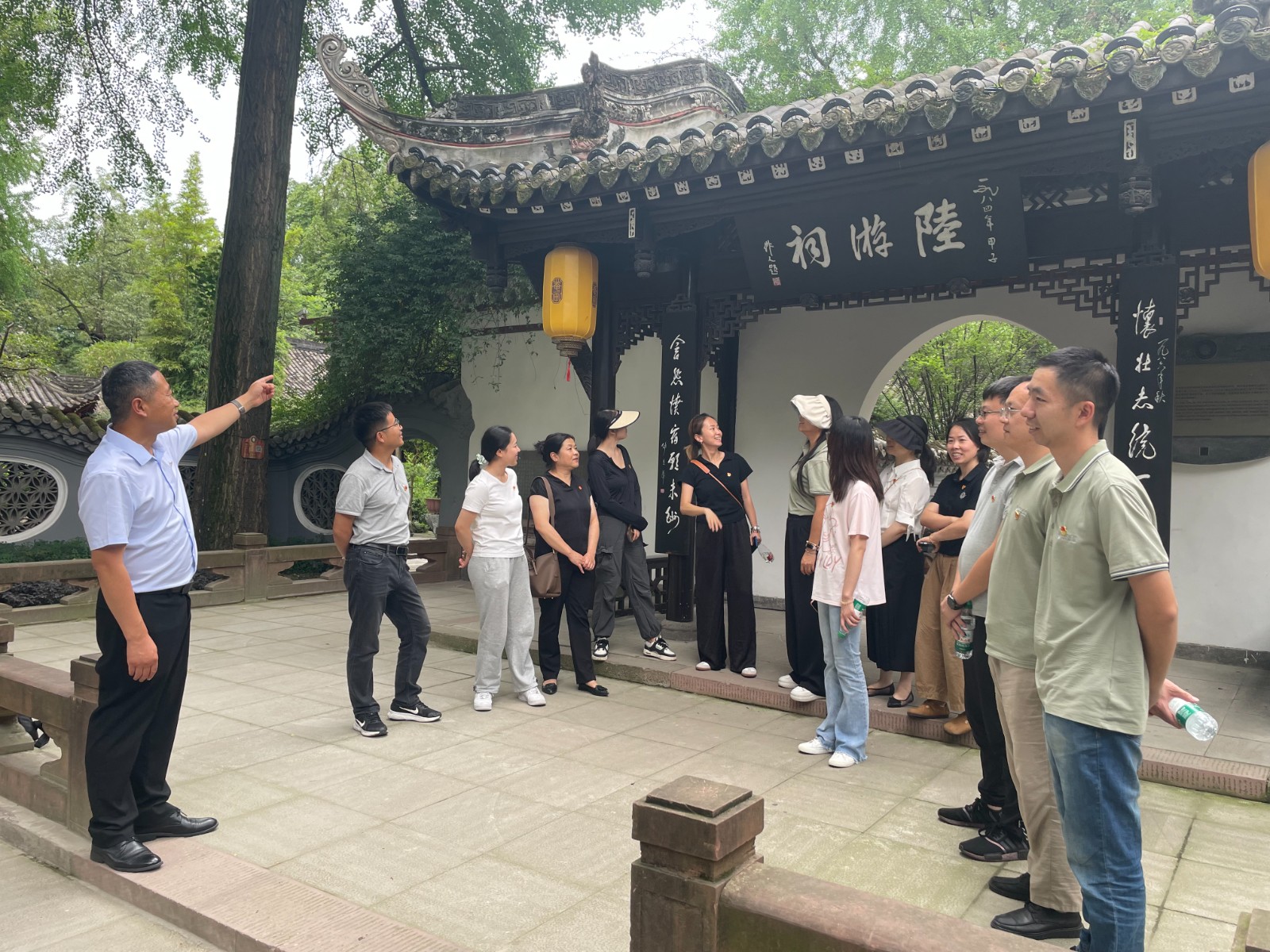 最后,全體人員前往崇州罨畫池廉潔文化教育基地,參觀我國著名愛國詩人陸游祠堂、瞻仰陸游塑像、鑒賞陸游愛國詩詞書畫展、佇足放翁家訓館學習優秀家風文化,支部書記王輝同志以《汲取中國傳統優秀文化精髓涵養遵紀清廉新時代精神》為題給黨員上廉潔教育黨課。