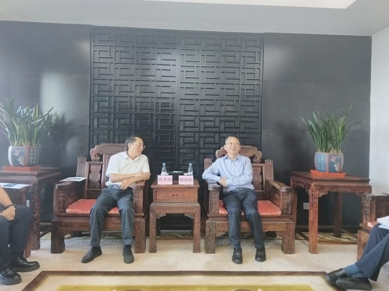 8月20日下午,川投能源副總經理、攀水電公司黨總支書記、董事長徐孝剛在武漢拜會長江設計集團黨委書記、董事長胡向陽,匯報銀江水電站工程建設情況。長江設計公司總經理、攀水電公司董事敖昕,長江設計公司高級咨詢師、銀江項目勘察設計總工汪慶元,攀水電公司黨總支副書記、董事會秘書、工會主席鄧勇,相關部門人員參加會見。