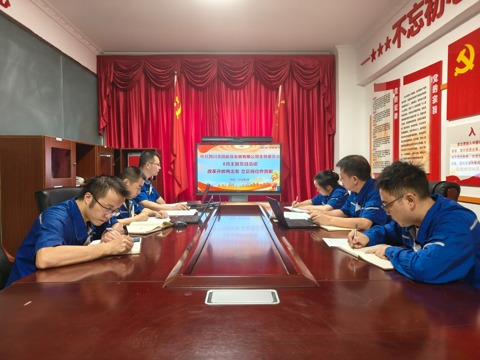 根據川投電力黨委部署安排,8月27日,玉田黨支部組織開展“改革開放再出發、立足崗位作貢獻”主題黨日活動,深入學習貫徹黨的二十屆三中全會精神,結合工作實際開展專題學習研討。會議由黨支部書記、廠長葉勁馳主持,支部全體黨員、發展對象、入黨積極分子參加。