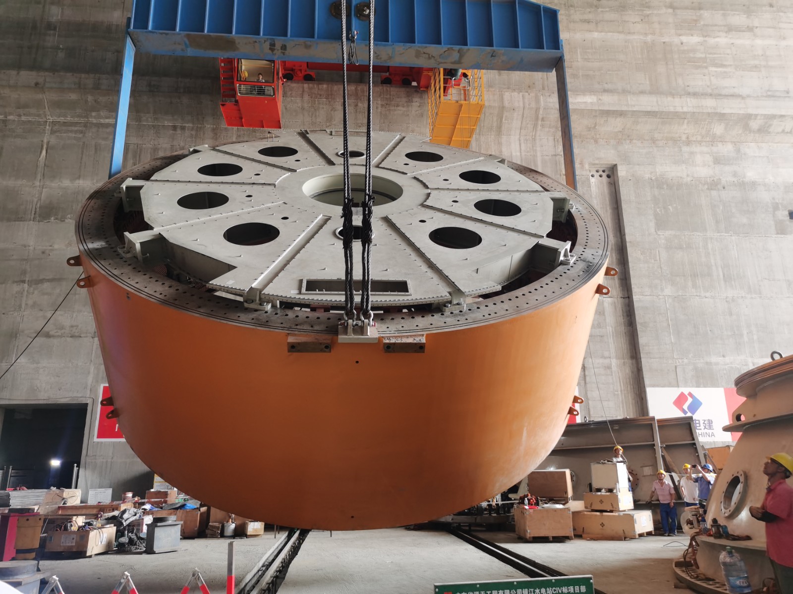 穩中求快,加速建設。在銀江水電站的建設現場,機器轟鳴,焊花四濺,一片繁忙景象。攀水電公司在確保“穩”的堅實基礎上,積極踐行“快”的要求,以只爭朝夕的緊迫感,全力加快項目建設進度。隨著機電安裝作業面的全面鋪開,工期緊、任務重的挑戰擺在眼前,攀水電公司果斷采取一系列有力措施,加大人員和設備投入,增加施工班組,延長作業時間,提高工作效率。2024年8月29日下午,在銀江水電站的機電安裝現場,氣氛熱烈而緊張,隨著定子的精準吊裝到位,標志著首臺機組安裝取得了重大進展。目前銀江水電站首臺機組導水機構、主軸、組合軸承、轉輪、定子、轉子均已安裝就位,為后續機組的調試和投產奠定了堅實的基礎。