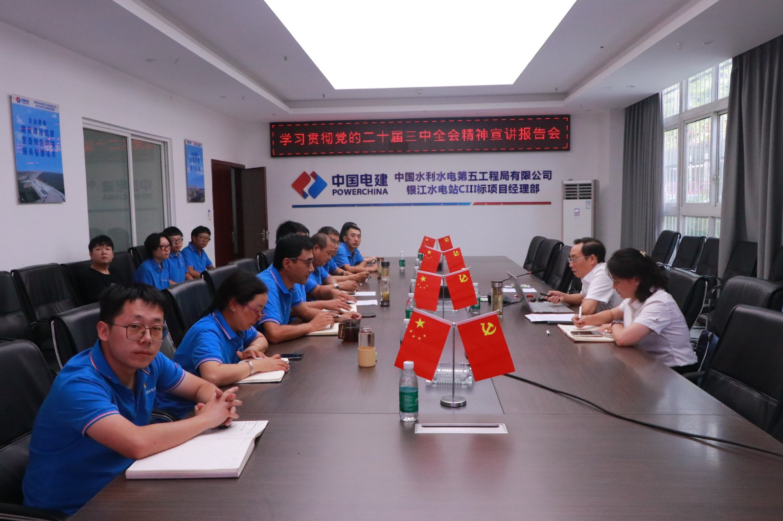 為深入學習宣傳貫徹黨的二十屆三中全會精神,按照川投能源黨委的部署和攀水電公司黨總支的安排,近日,川投能源副總經(jīng)理、公司黨總支書記、董事長徐孝剛到聯(lián)系指導(dǎo)支部水電五局銀江項目黨支部進行黨的二十屆三中全會精神專題宣講。水電五局銀江項目黨支部全體黨員、入黨積極分子、青年職工代表共計15人參加此次宣講報告會。