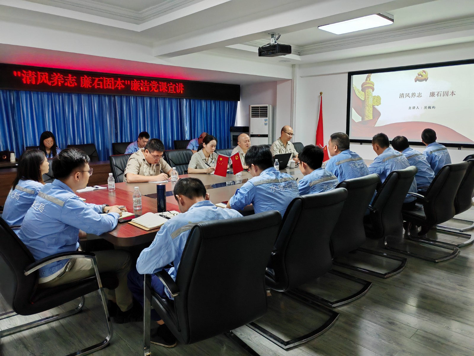 為不斷增強黨員干部和廣大員工廉潔自律和責任擔當意識,9月13日,攀水電公司黨總支副書記、總經理吳巍嶼在聯系指導水電七局銀江項目支部的過程中,以“清風養志、廉石固本”為主題,為支部成員講授了一堂廉潔黨課,公司計劃合同部、水電七局項目部主要負責人及相關部門共計17人參加。