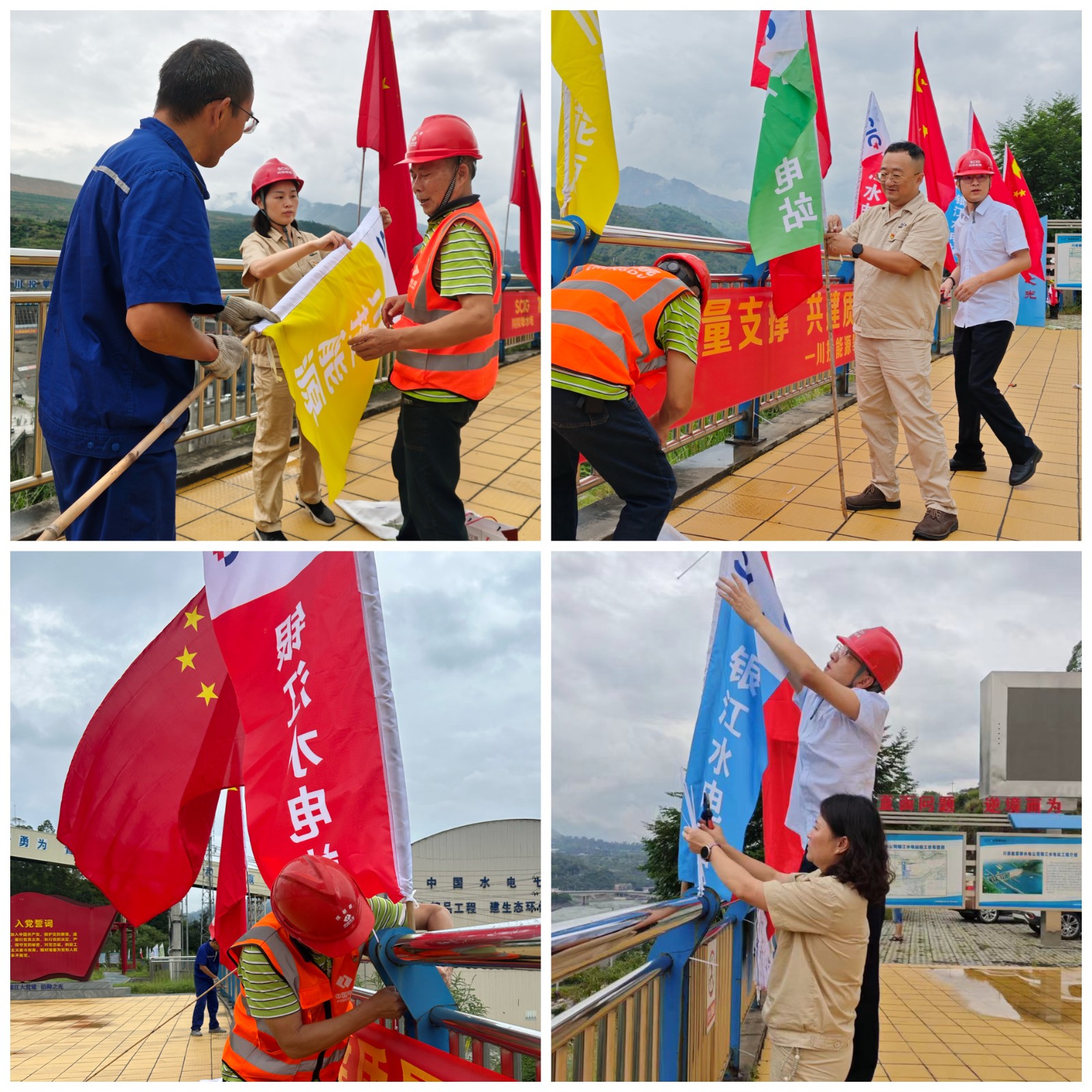 在大家的共同努力下,一面面嶄新鮮艷的五星紅旗,一幅幅絢麗的彩旗掛在黨建宣傳陣地和施工區(qū)域,紅旗彩旗與綠水青山交相輝映,隨著江風(fēng)襲來迎風(fēng)招展,構(gòu)成了金沙江畔的美麗畫卷。每名黨員都用勞動之美迎接國慶節(jié)的到來,用務(wù)實的工作作風(fēng)確保實現(xiàn)銀江水電站年底發(fā)電目標(biāo),用實際行動向祖國母親75歲華誕獻禮。