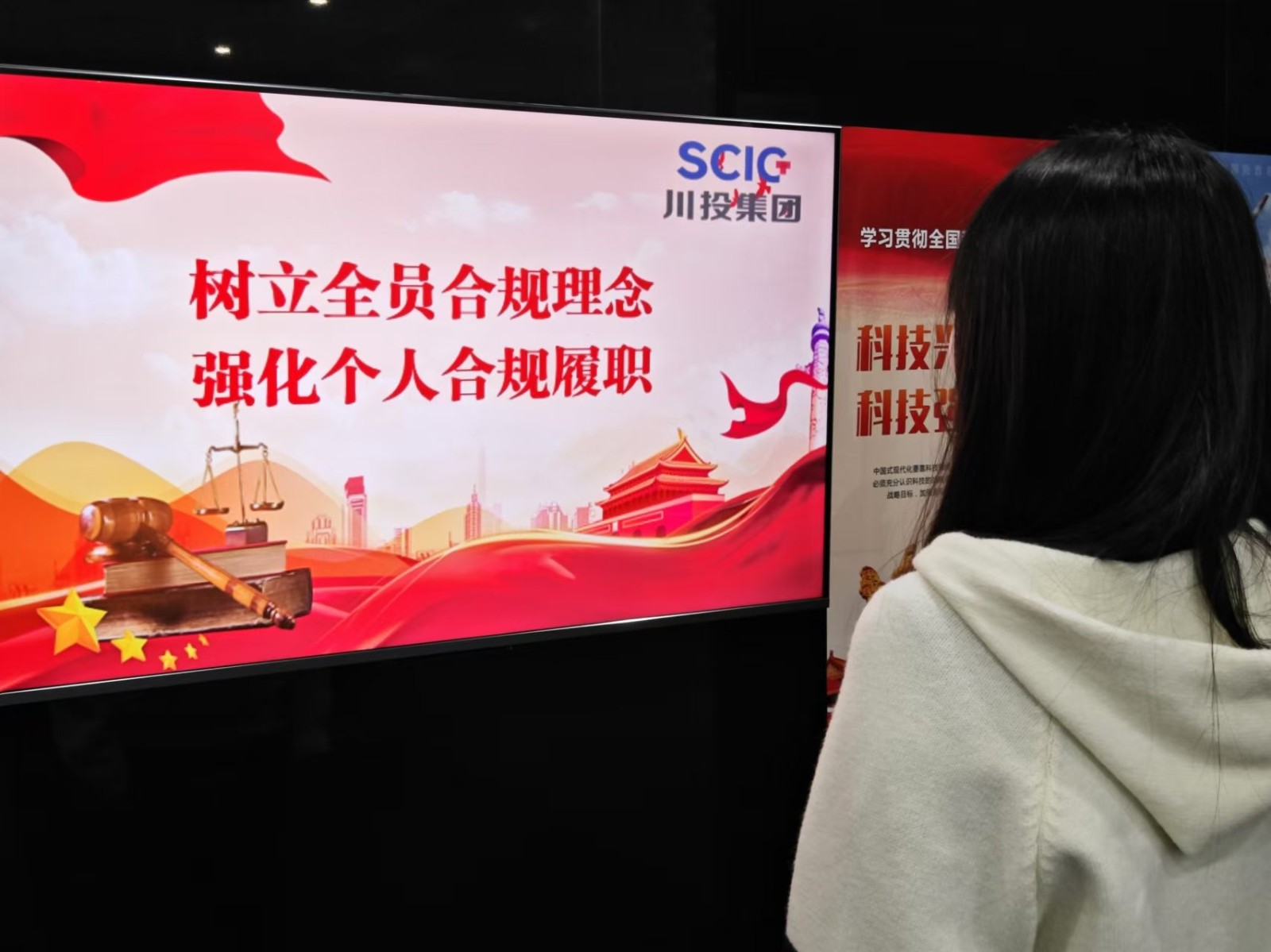 圍繞促進合規管理與公司業務深度融合,川投電力以“樹立全員合規理念 強化個人合規履職”為主題,開展合規宣傳月活動,利用電視屏幕滾動播放八條合規宣傳標語,制定完成風險數據庫,落實各項合規管理要求,確保合規管理機制在公司內部有效運行。