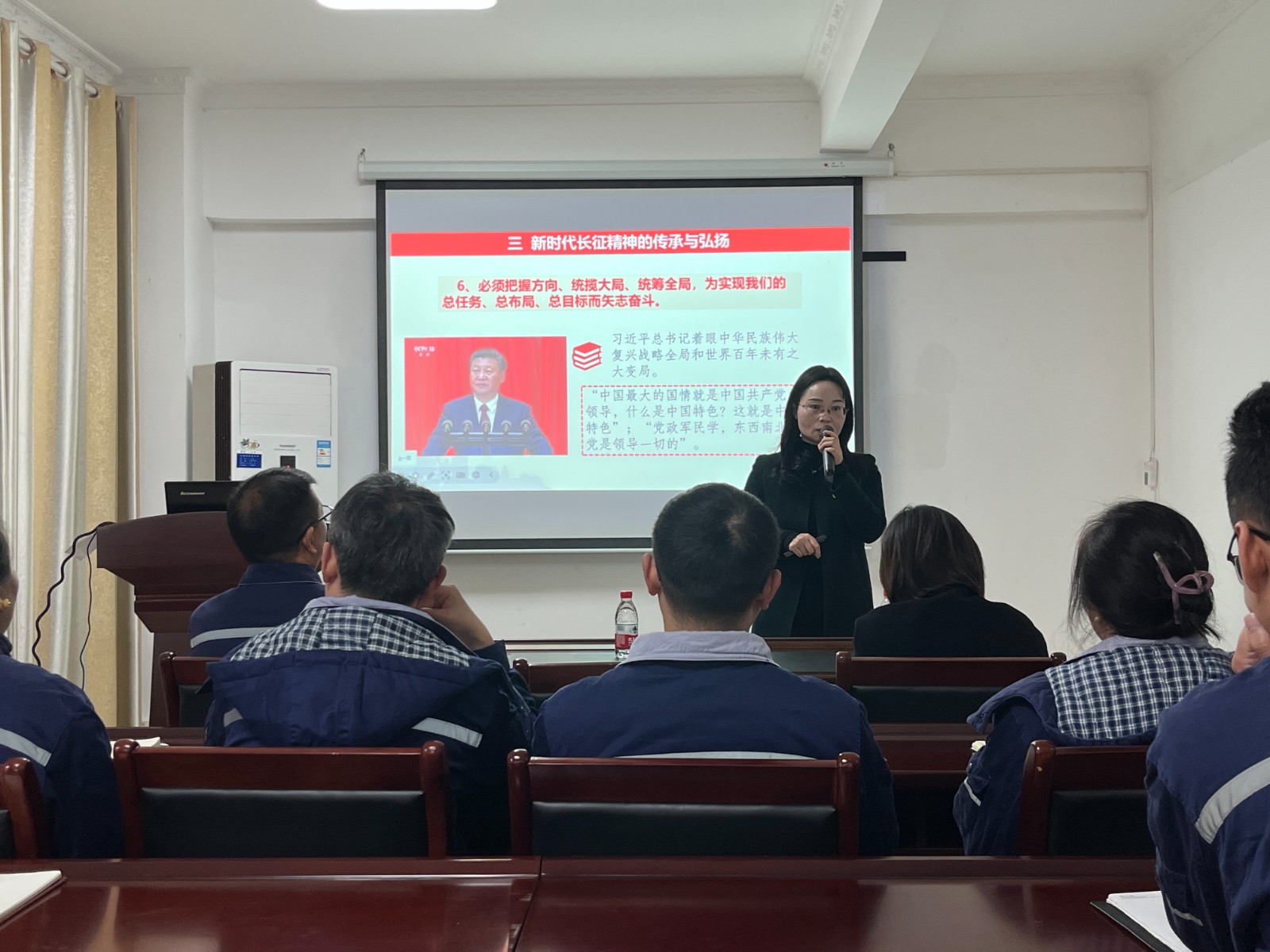王興蓉以紅軍長征在四川為主線,從長征的基本概況、紅軍長征在四川的光輝歷程、新時代長征精神的傳承與弘揚等多個方面,用大量生動鮮活的案例,結合國內國際現狀,就新時代如何弘揚和傳承長征精神進行深入探討,進一步激發(fā)公司黨員干事創(chuàng)業(yè)的精氣神。