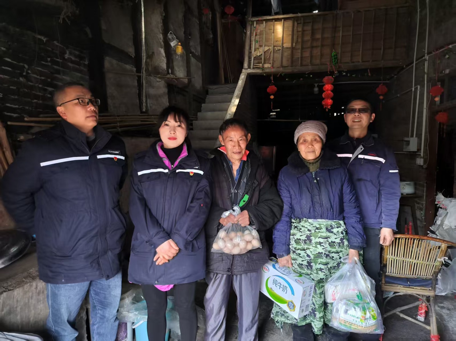 電廠所在地洪雅縣止戈鎮止火街社區失獨老人古昌華夫婦已年過七旬,加之患有冠心病、心肌炎和哮喘等多種疾病,身體狀況不佳,生活面臨諸多不便。活動當天,支部黨員、群眾代表帶著精心準備的慰問品,早早來到古昌華夫婦家中。一進門,黨員們便親切地與老人拉家常,詢問他們的身體狀況和生活情況,耐心傾聽老人的心聲,給予他們情感上的慰藉。在交流過程中,黨員們還為老人講述近期社會上的新鮮事和電廠的發展情況,為他們解決了一些日常生活難題。古昌華夫婦臉上洋溢著幸福的笑容,緊緊握著員工們的手連聲道謝:“謝謝你們來看望我們,讓我們感受到了親人般的溫暖!”