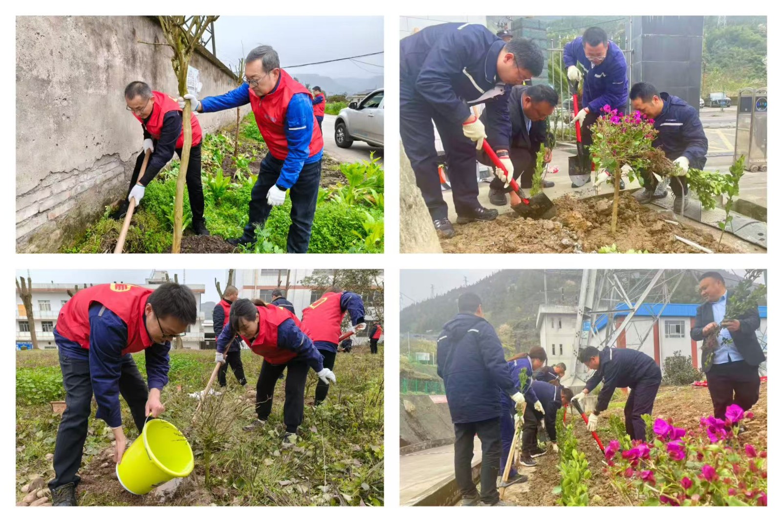 活動當(dāng)天,高奉山電廠、腳基坪電廠全體員工積極參與,大家分工協(xié)作,干勁十足。活動現(xiàn)場,員工們揮鍬鏟土、扶苗填坑、澆水灌溉,每一道工序都認(rèn)真細(xì)致,經(jīng)過一上午的辛勤勞動,電廠周邊的空地上種下了一排排整齊的樹苗,為廠區(qū)增添了一片新綠。同時,槽漁灘公司黨員服務(wù)群眾先鋒隊在青衣江江畔開展垃圾清理志愿服務(wù)。