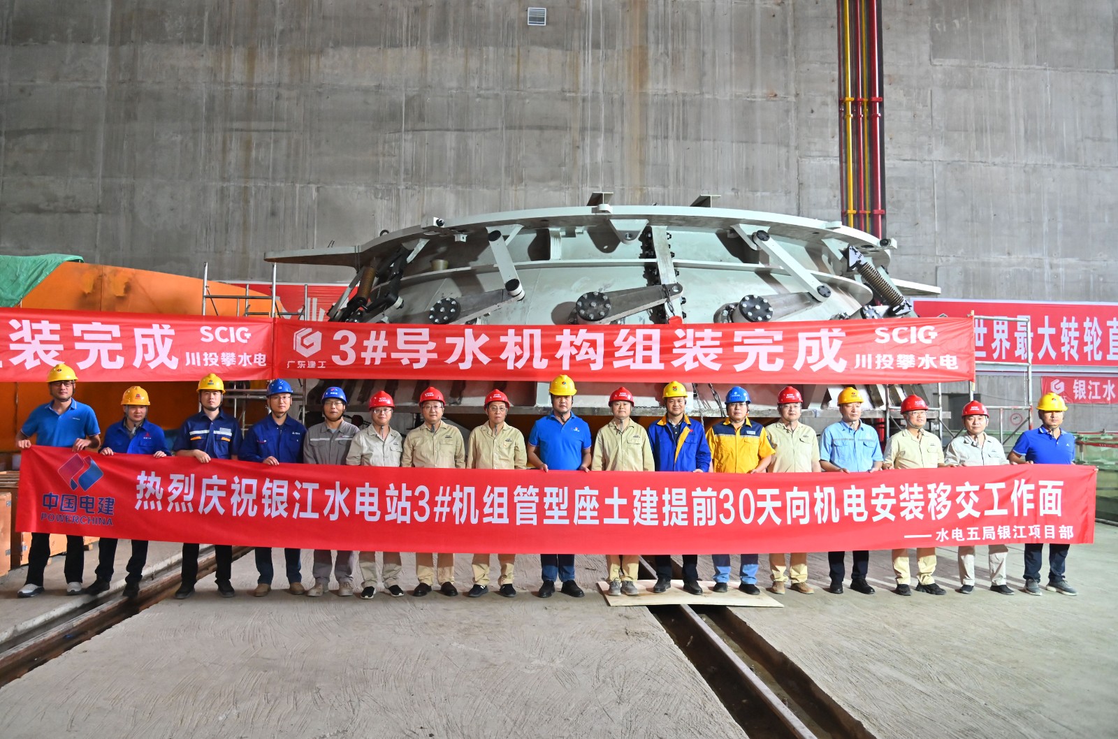 ?三期澆筑提速破局,機組拼裝全力推進。公司緊緊圍繞2025年防洪度汛和全部機組投產(chǎn)發(fā)電這兩個重點目標,團結(jié)帶領(lǐng)各參建單位,精心統(tǒng)籌、倒排工期,采取優(yōu)化設(shè)計方案、調(diào)整施工工藝、強化資源調(diào)配等一系列措施,推動工程建設(shè)始終保持高速前進的態(tài)勢。目前,銀江水電站三期工程11號至13號壩段混凝土澆筑施工全面推進,一季度實際完成的澆筑工程量超出原計劃20%;3號機組轉(zhuǎn)子組裝工作已經(jīng)完成,定子組裝完成60%,導(dǎo)水機構(gòu)、主軸等關(guān)鍵部件均已運抵現(xiàn)場并正在加緊組裝;3號機組管形座二期混凝土澆筑完成 50%;5號、6號機組管形座安裝分別完成90%、60%,正朝著2025年底全面建成投產(chǎn)的目標全力奮進。