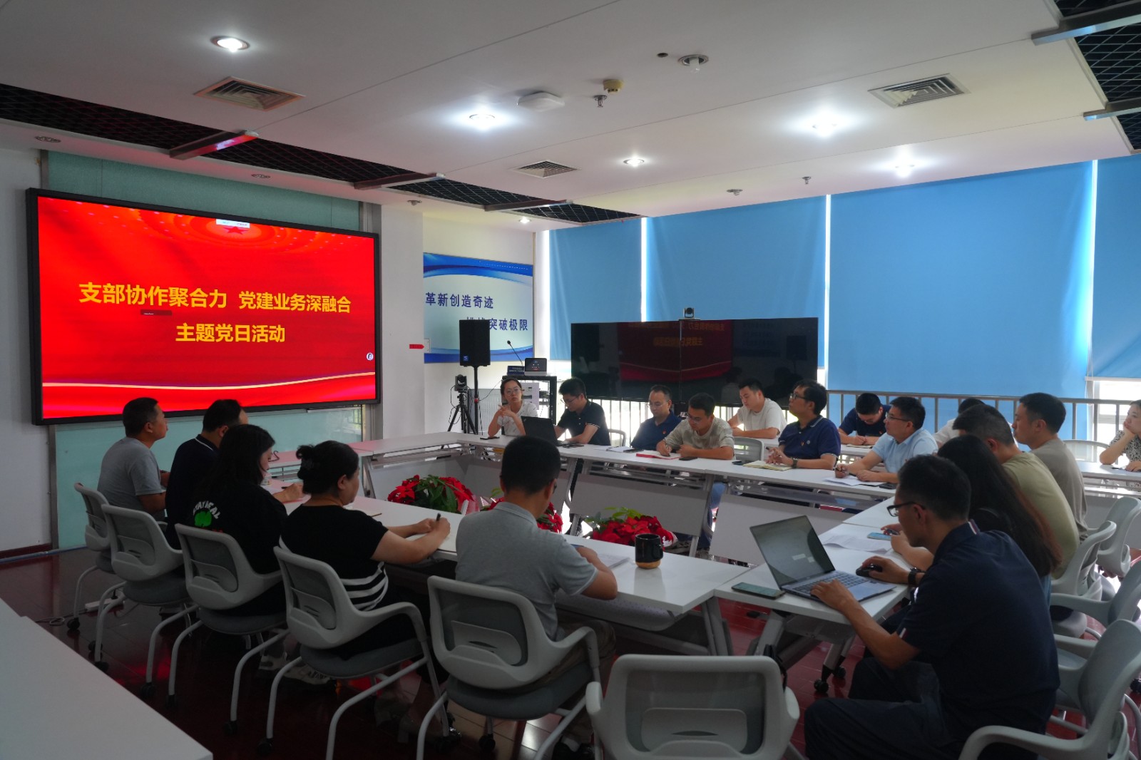 為進一步探索黨建與業務深度融合路徑,提升黨建質量、激活發展動能,共同推進黨建工作與業務工作同頻共振,7月24日,交大光芒黨總支所屬三個黨支部聯合開展“支部協作聚合力,黨建業務深融合”主題黨日活動。活動由第一黨支部書記、公司副總工程師王輝主持,各支部黨員參加。