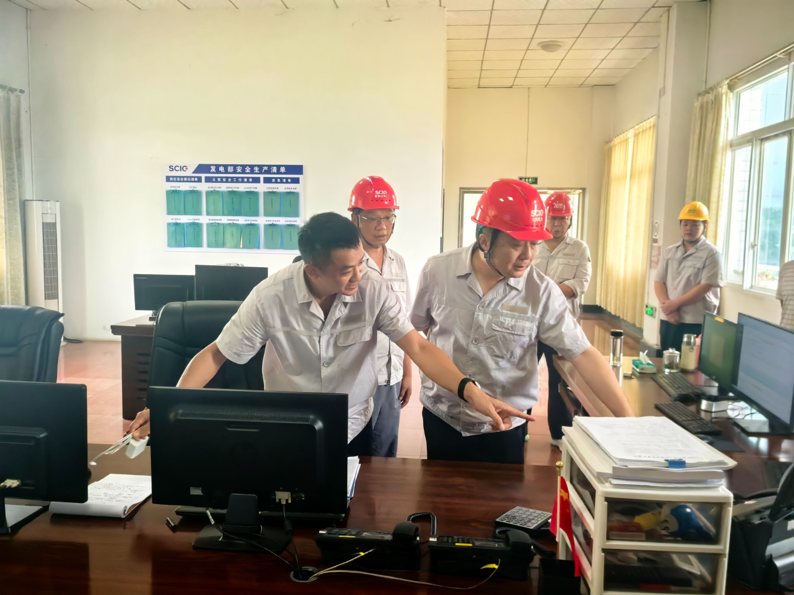 楊濤一行直奔生產(chǎn)現(xiàn)場,實(shí)地查看了大壩樞紐、發(fā)電機(jī)組、中控室、防汛物資儲備點(diǎn)等關(guān)鍵區(qū)域,詳細(xì)詢問了當(dāng)前水庫水位、來水趨勢、設(shè)備運(yùn)行狀態(tài)及防汛應(yīng)急預(yù)案落實(shí)情況。在聽取電廠關(guān)于汛期安全工作的匯報(bào)后,楊濤對電廠前期防汛工作給予肯定,并就做好近期安全工作提出工作要求:一是強(qiáng)化責(zé)任落實(shí),嚴(yán)格執(zhí)行24小時(shí)防汛值班制度,確保各級責(zé)任人到崗到位。二是排查風(fēng)險(xiǎn)隱患,針對極端天氣可能引發(fā)的山洪、滑坡等風(fēng)險(xiǎn),開展拉網(wǎng)式排查,對發(fā)現(xiàn)的問題建立臺賬、限期整改,確保不留死角。三是完善應(yīng)急預(yù)案,加強(qiáng)實(shí)戰(zhàn)演練,確保應(yīng)急響應(yīng)迅速有效,保障電站及下游群眾安全。四是統(tǒng)籌發(fā)電與防汛,科學(xué)調(diào)度水庫庫容,平衡發(fā)電效益與防洪安全。