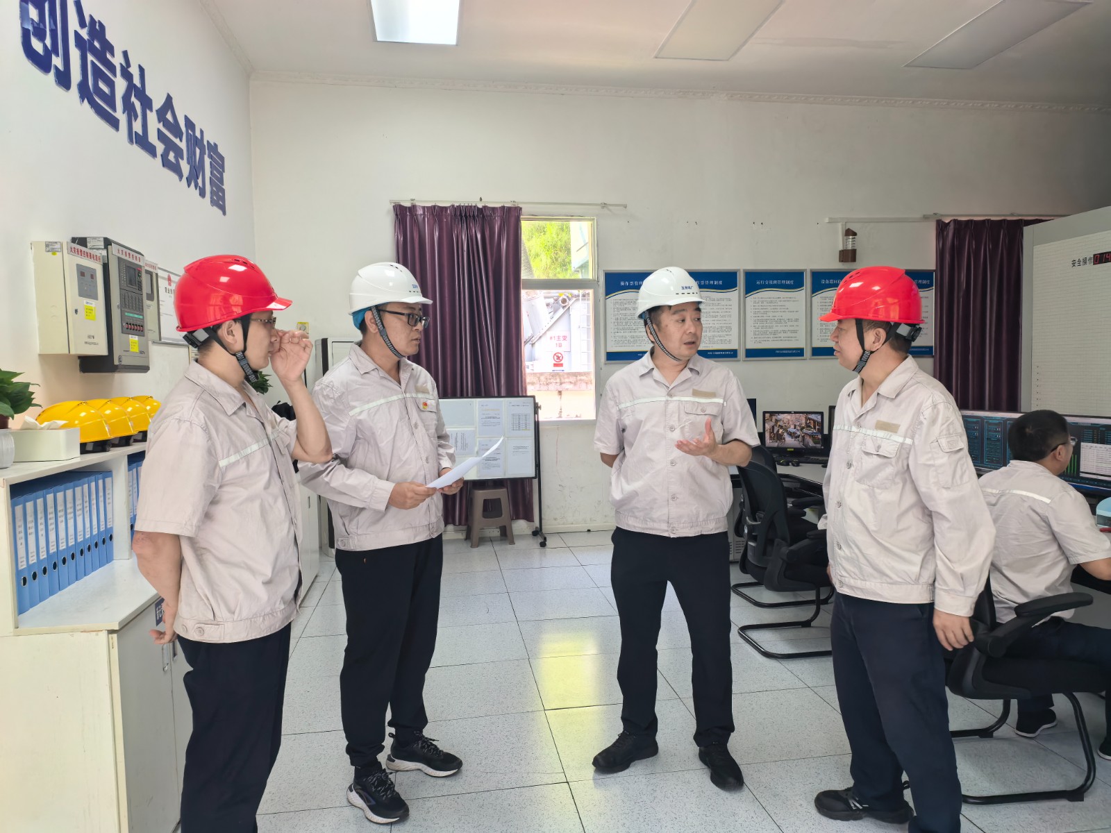 楊濤一行深入大壩、主副廠房、中控室、升壓站等關(guān)鍵區(qū)域,圍繞水工建筑物安全度汛、機(jī)組運(yùn)行工況、設(shè)備檢修維護(hù)、消防設(shè)施配備及應(yīng)急物資儲(chǔ)備等方面,逐項(xiàng)排查風(fēng)險(xiǎn)隱患。檢查中,楊濤強(qiáng)調(diào),要堅(jiān)持“人民至上、生命至上”理念,以極限思維將防汛減災(zāi)措施細(xì)化落實(shí)到最小單元,堅(jiān)決守牢安全底線;針對(duì)大壩落石風(fēng)險(xiǎn),要求電廠研究采用遠(yuǎn)程監(jiān)視和控制方式,保障大壩值班人員安全,同時(shí)進(jìn)一步改善員工住宿條件。