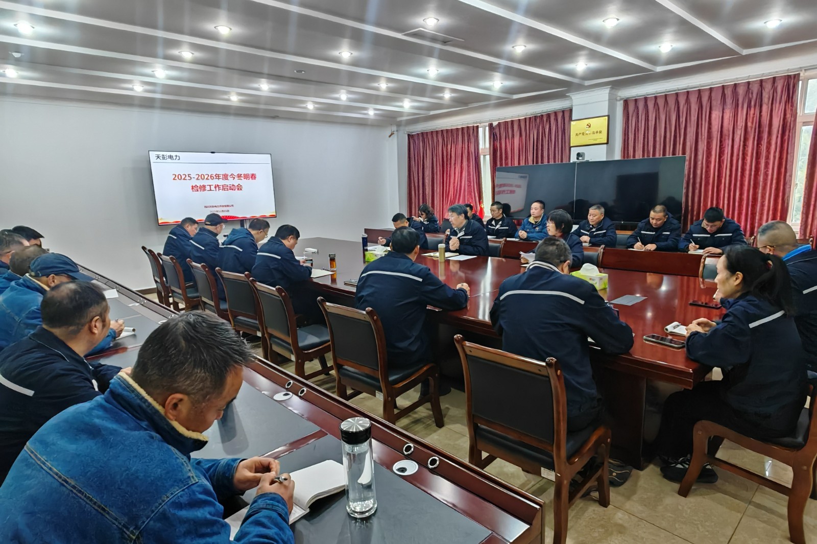 11月21日,天彭電力召開2025-2026年度今冬明春檢修工作啟動會,梳理總結(jié)上年檢修維護(hù)工作,安排部署今冬明春檢修重點(diǎn)工作,統(tǒng)一思想,凝聚干勁,形成同頻共振、同向發(fā)力的檢修工作局面。公司領(lǐng)導(dǎo)、中層干部、安全專責(zé)、車間設(shè)備管理員及全體檢修維護(hù)人員參加會議,會議由公司黨總支書記、董事、總經(jīng)理劉紅兵主持。