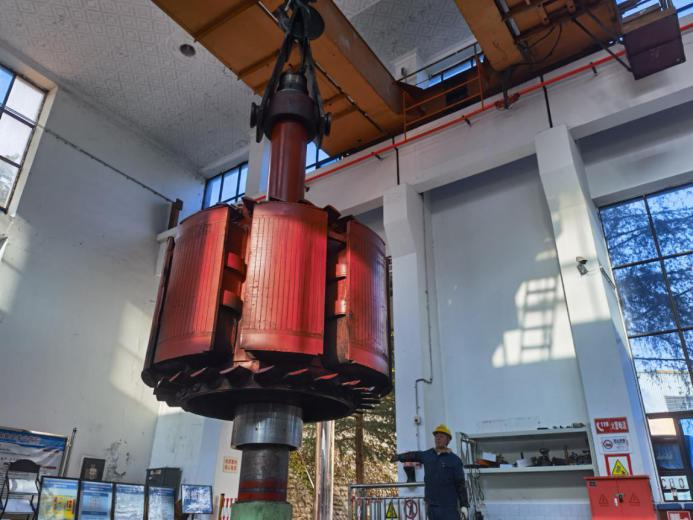 起吊前,檢修負責人組織開展了全覆蓋安全技術(shù)交底,重點針對防高空落物、防人員摔跌、防機械傷害、防起重傷害等關(guān)鍵危險點進行逐一剖析,并細化落實相應(yīng)預(yù)控措施,嚴格對照起吊方案逐項核驗安全技術(shù)管控要求,確保全員熟知風險、熟練掌握操作規(guī)范,同時對場內(nèi)行車電氣系統(tǒng)、機械部件進行全面細致檢查與試驗。16時05分,在現(xiàn)場統(tǒng)一指揮下,1#機組轉(zhuǎn)子沿預(yù)定路徑平穩(wěn)提升轉(zhuǎn)運,水平移動過程保持勻速,經(jīng)過45分鐘精準操控與全員協(xié)同奮戰(zhàn),轉(zhuǎn)子平穩(wěn)地從機坑吊出并精準移放至安裝場檢修指定位置,整個過程銜接流暢、安全可控。