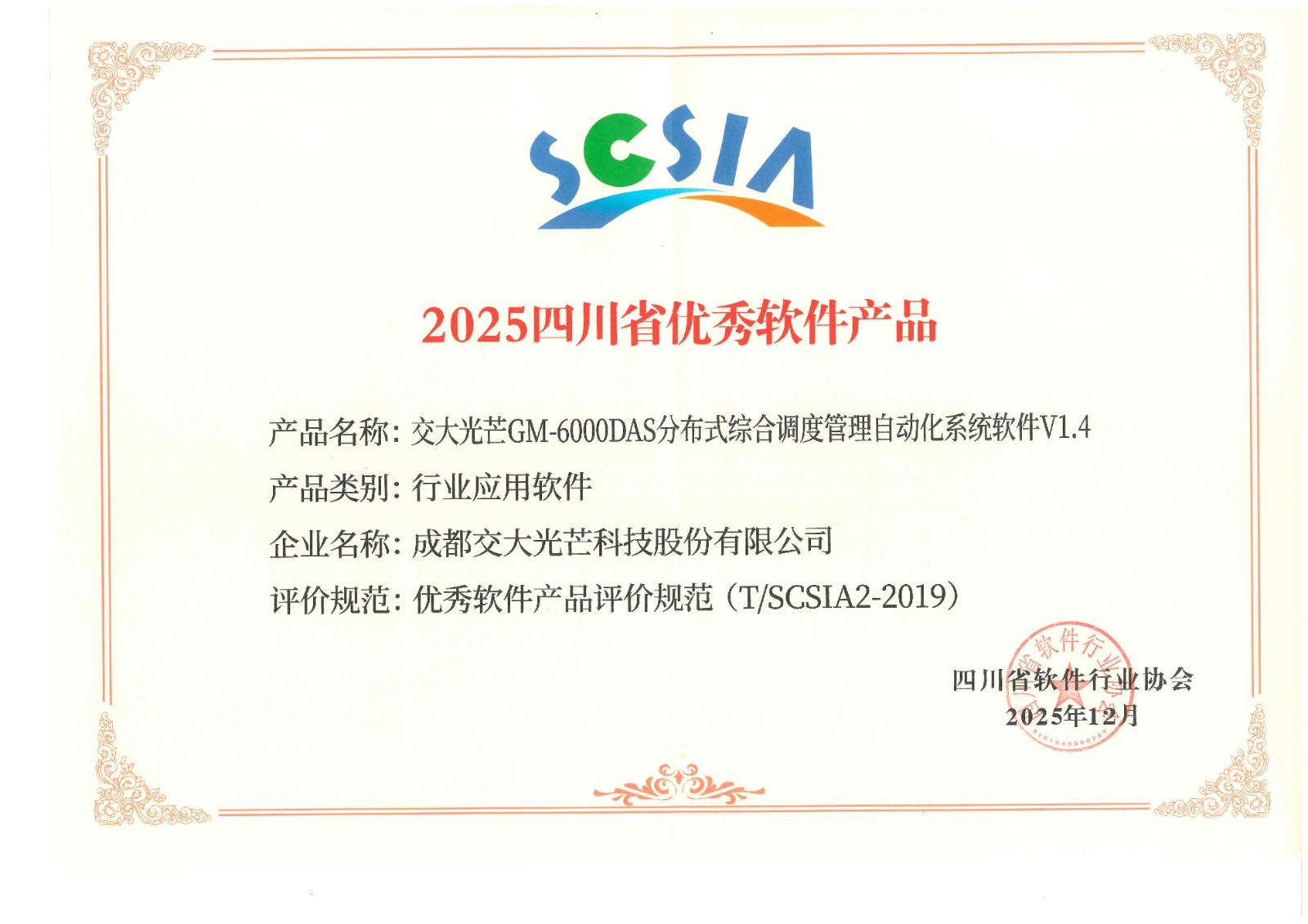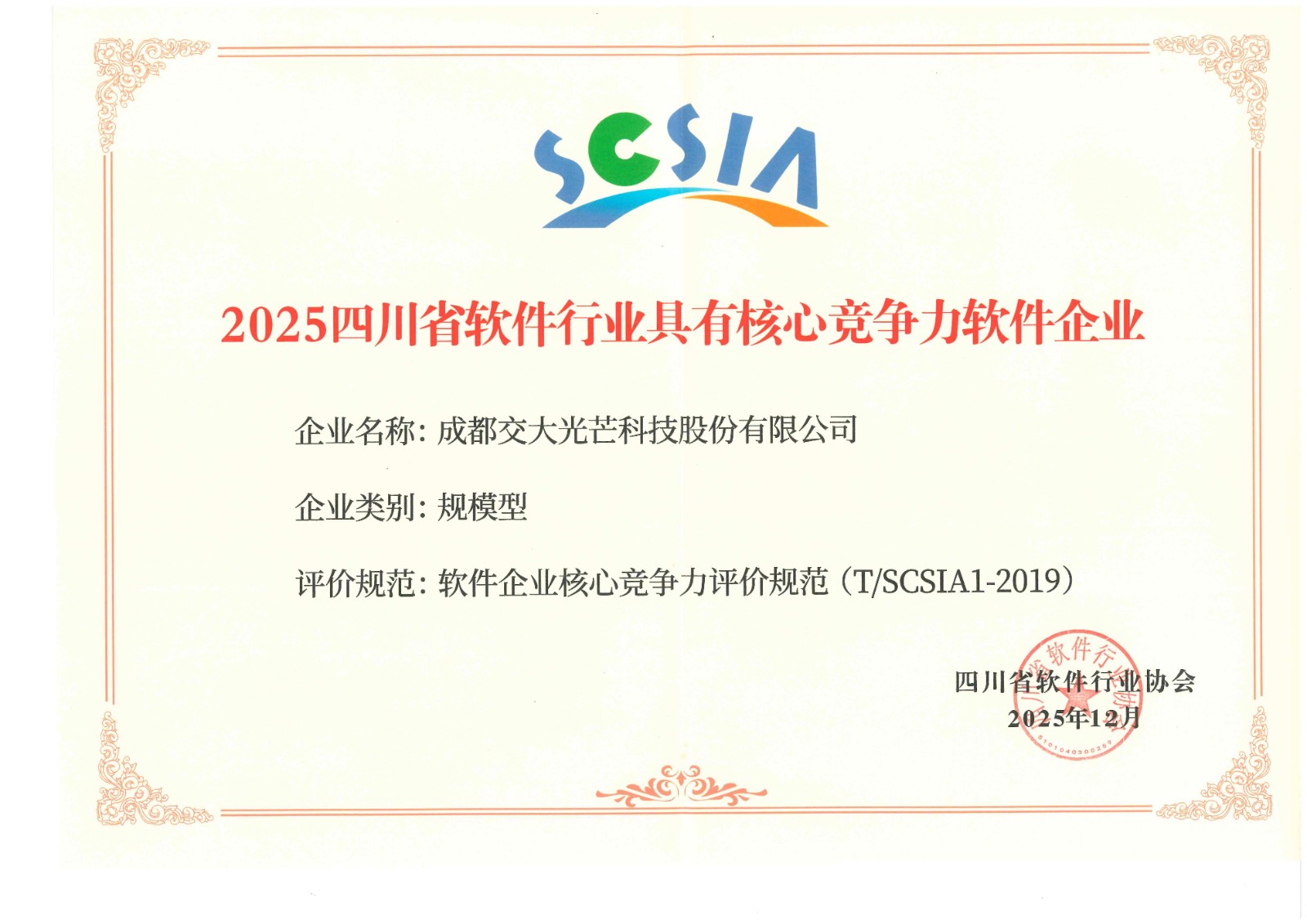 本次評選由四川省軟件行業協會組織專家依據《軟件企業評估規范》《軟件產品評估規范》等標準,對企業經營能力、產品競爭力、技術創新能力等多項指標進行綜合評估,全面考察企業軟件技術綜合實力。交大光芒本次獲評,標志著公司在技術創新、產品研發與行業應用等方面的表現獲得行業認可。