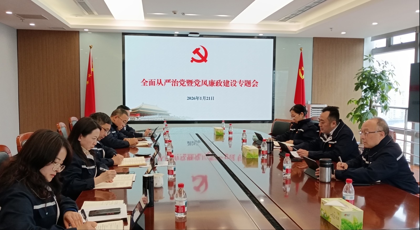 楊濤對(duì)班子成員履職工作情況進(jìn)行點(diǎn)評(píng),結(jié)合當(dāng)前黨風(fēng)廉政建設(shè)和反腐敗斗爭的新形勢(shì)、新要求開展集體廉潔談話,他強(qiáng)調(diào)一是提升政治站位,筑牢思想根基,讀懂“一崗雙責(zé)”的分量與意義。作為“關(guān)鍵少數(shù)”,要深刻認(rèn)識(shí)到,提升政治站位是履行好“一崗雙責(zé)”的思想前提與行動(dòng)先導(dǎo),必須將管黨治黨與推動(dòng)發(fā)展的雙重責(zé)任真正扛在肩上、落到實(shí)處,做到權(quán)力與責(zé)任共擔(dān)、業(yè)務(wù)與廉政并行,以實(shí)際行動(dòng)守護(hù)個(gè)人政治生命,維護(hù)公司風(fēng)清氣正的良好政治生態(tài)。二是錨定主責(zé)主業(yè),筑牢擔(dān)當(dāng)之基,讓“一崗雙責(zé)”從要求變行動(dòng)。聚焦重點(diǎn)領(lǐng)域,細(xì)化“一崗雙責(zé)”,確保廉政建設(shè)要求深度融入生產(chǎn)經(jīng)營、招標(biāo)采購、選人用人等關(guān)鍵環(huán)節(jié),特別是設(shè)備檢修維護(hù)集中期、集控中心及智慧水電平臺(tái)建設(shè)、南江抽蓄項(xiàng)目推進(jìn)、新項(xiàng)目拓展等當(dāng)前重點(diǎn)工作。領(lǐng)導(dǎo)班子要帶頭表率,層層分解壓實(shí)責(zé)任,形成“一級(jí)抓一級(jí)、層層抓落實(shí)”的工作格局。各級(jí)紀(jì)檢組織要切實(shí)履行常態(tài)化監(jiān)督檢查及精準(zhǔn)化執(zhí)紀(jì)問責(zé),確保“一崗雙責(zé)”要求不折不扣落到實(shí)處。三是持續(xù)整治強(qiáng)作風(fēng),筑牢紀(jì)律堤壩,把廉潔自律刻進(jìn)骨子里。要將紀(jì)律挺在前面,以身作則,帶頭嚴(yán)格執(zhí)行中央八項(xiàng)規(guī)定精神,堅(jiān)決抵制形式主義、官僚主義等“四風(fēng)”問題;帶頭弘揚(yáng)艱苦奮斗、勤儉節(jié)約的優(yōu)良作風(fēng),做到廉潔齊家、從嚴(yán)治企,以良好家風(fēng)涵養(yǎng)清正黨風(fēng)政風(fēng)。四是用好警示教育“活教材”,筑牢廉潔防線,以零容忍態(tài)度深化監(jiān)督執(zhí)紀(jì)問責(zé)。大家務(wù)必以身邊案例為鏡鑒,深刻剖析根源,真正汲取教訓(xùn),時(shí)刻繃緊廉潔自律之弦,自覺對(duì)照黨紀(jì)檢視言行,主動(dòng)接受各方面監(jiān)督,習(xí)慣在“聚光燈”下用權(quán),確保權(quán)力陽光運(yùn)行。