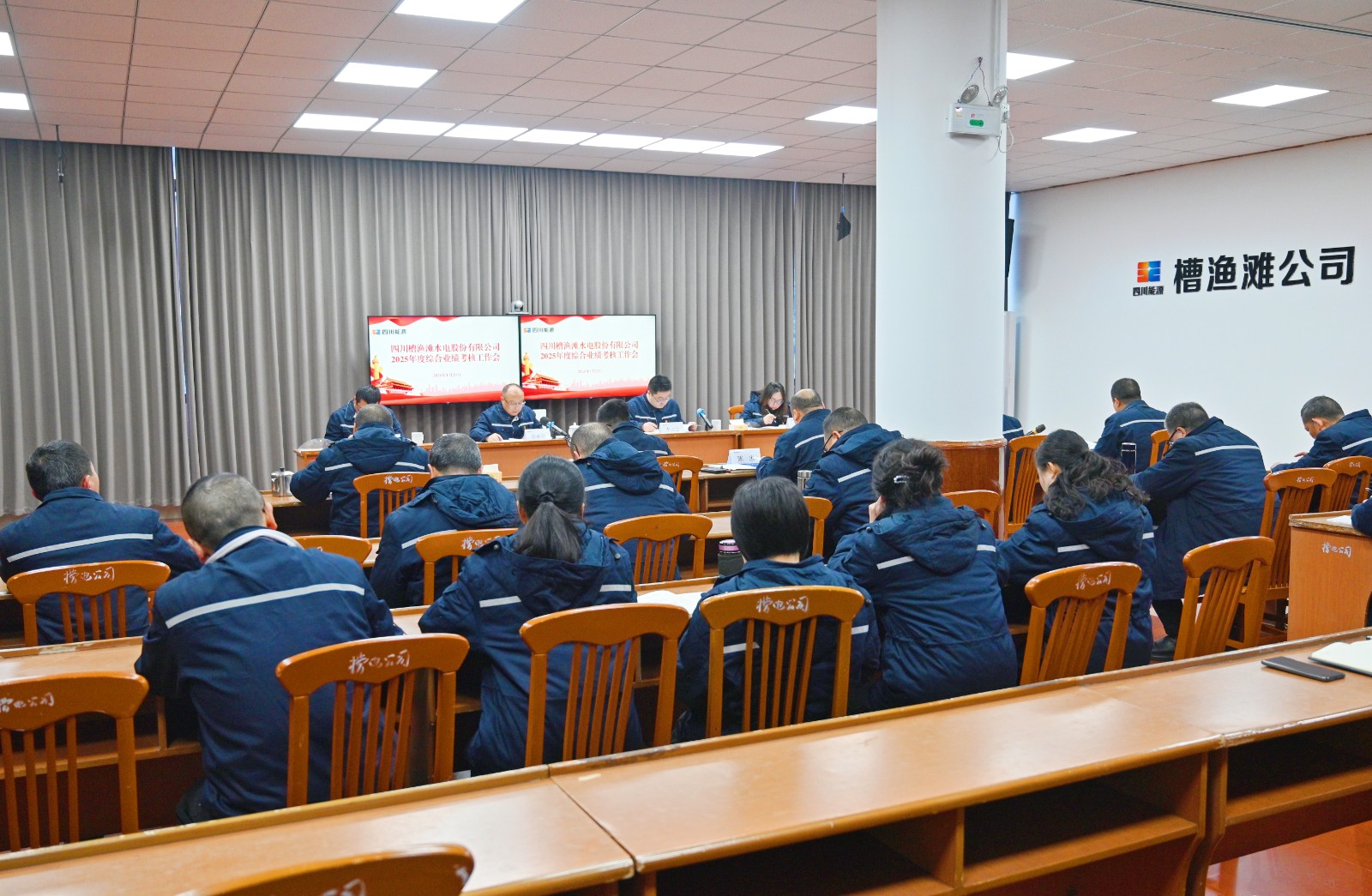 近日,川投電力黨委副書記、總經理蔡承德帶隊到槽漁公司開展2025年度綜合業績考核??己藭纱ㄍ峨娏k公室主任李天宏主持,考核組成員、槽漁灘公司領導班子成員、中層正職干部及部分職工代表參加會議。