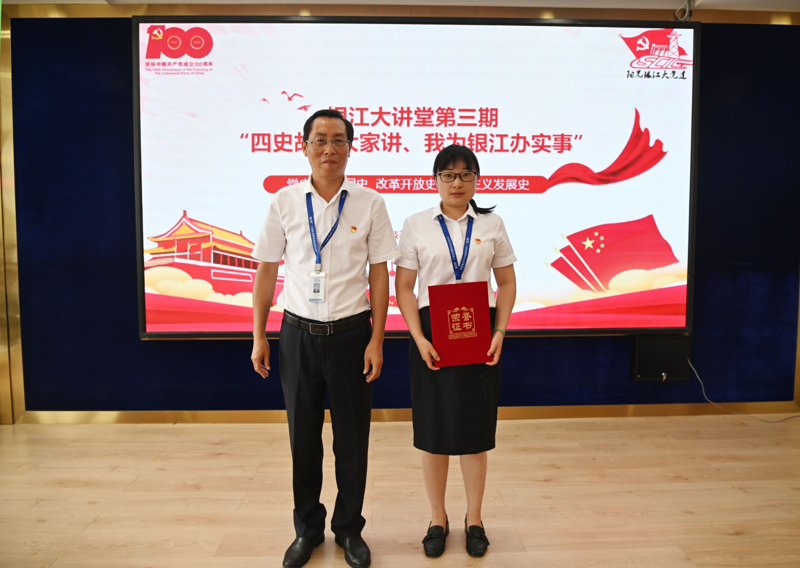 公司黨總支委員、董事會秘書、工會主席鄧勇在開場詞中講到,開展“四史故事大家講、我為銀江辦實事”微黨課演講活動,是公司“陽光銀江大黨建”、《建黨百年獻禮方案》及支部聯建示范基地創建的工作安排,讓廣大黨員干部走上講臺,以小故事傳遞大能量,小切口展現大主題;結合黨史學習教育和“四史”學習要求,落實徐孝剛書記“為工程一線服務,為銀江工程辦實事”的指示要求;結合工作實際,分享心得感悟,倡導人人為推進工程建設和公司發展辦實事。