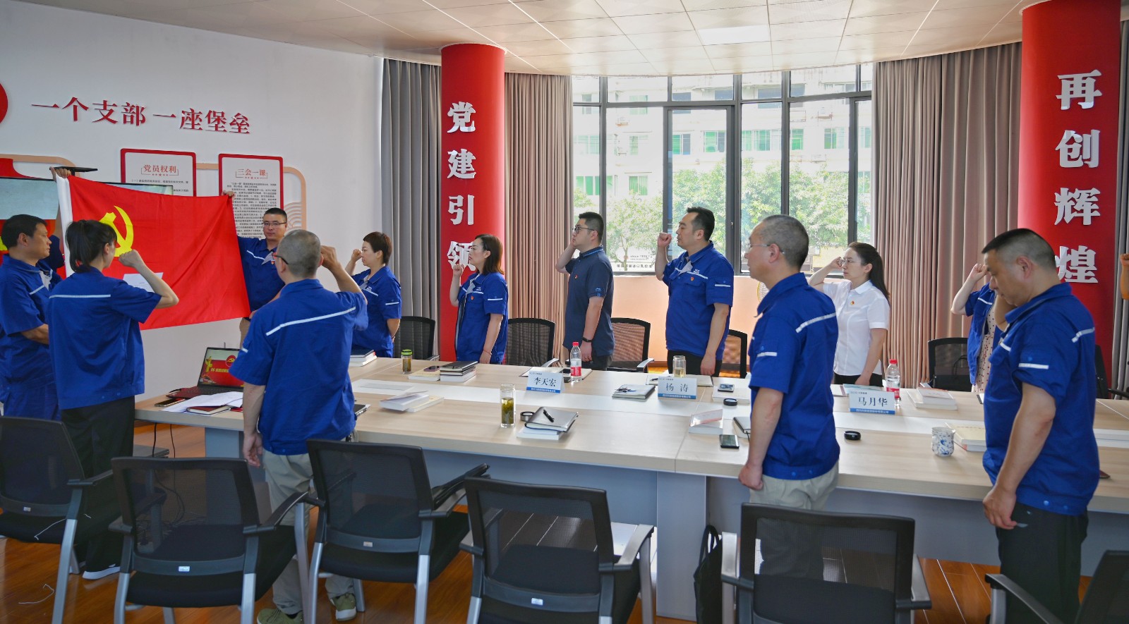 最后,全體黨員還集體過了政治生日,面對鮮紅的黨旗,重溫了入黨誓詞。