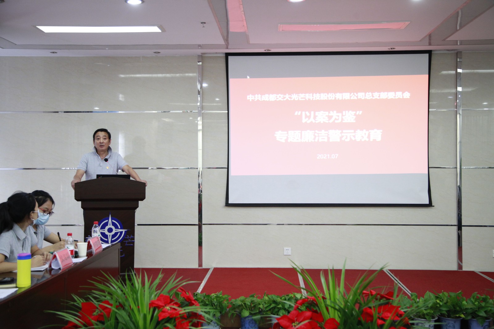 為不斷夯實干部員工崇廉拒腐思想道德防線,鞏固企業風清氣正政治生態,充分發揮違紀違法案例警示震懾作用,近日,川投能源交大光芒黨總支組織召開“以案為鑒”專題廉潔警示教育會。公司黨總支書記、總經理劉成輝主持會議并講話。