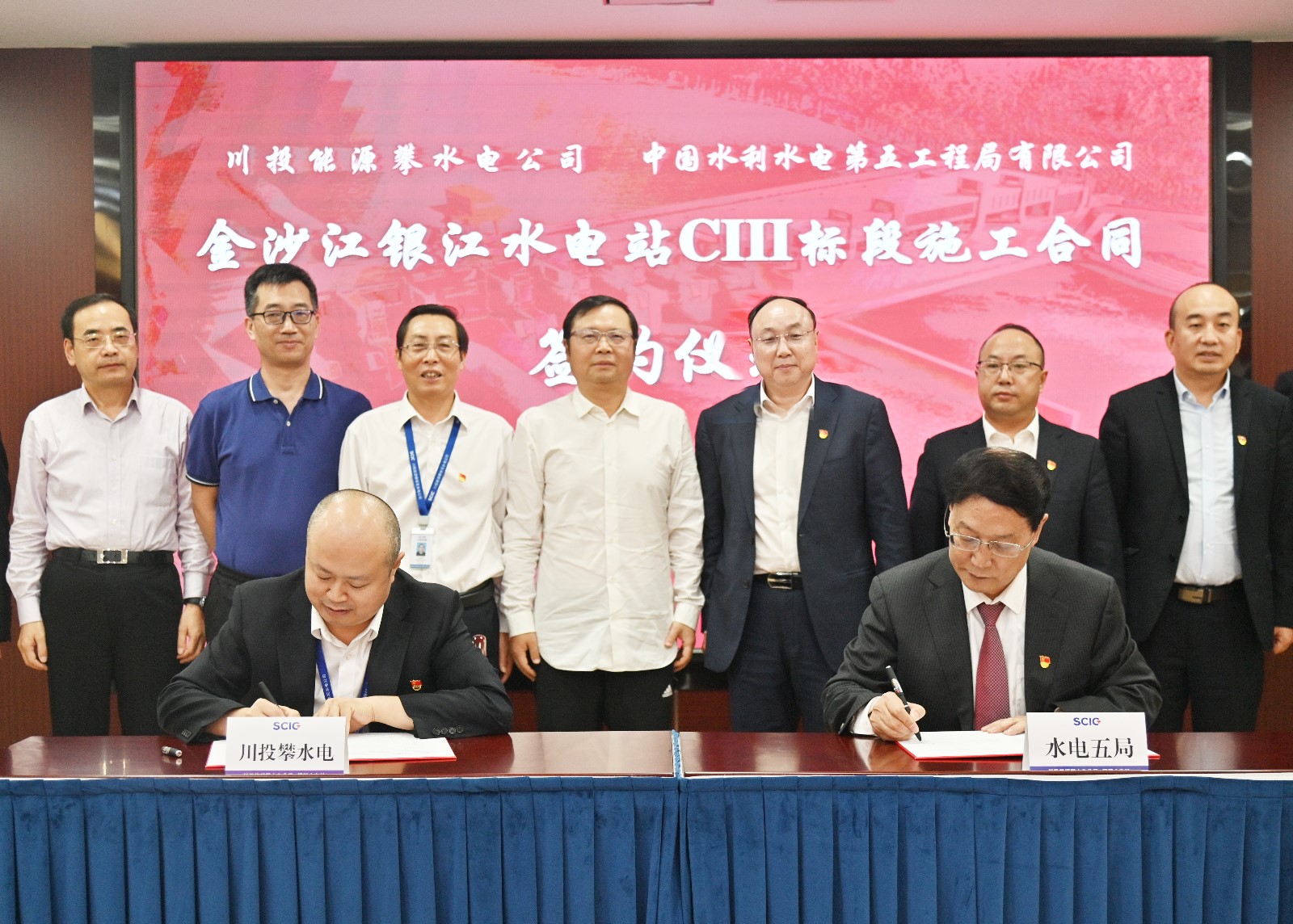 隨后,吳巍嶼與李福林代表雙方簽署銀江水電站CIII標段施工合同。集團公司經(jīng)營管理部劉厚榮、王楓,攀水電公司各部門負責人,水電五局相關(guān)人員參加本次簽約儀式。
